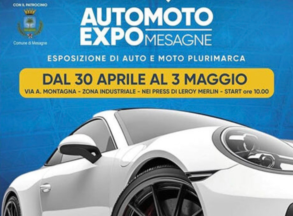 Mesagne si prepara ad accendere i motori con la prima edizione di Automoto Expo Mesagne, l’evento dedicato al mondo delle auto e delle moto in programma dal 30 aprile al 3 maggio nella zona industriale di via A. Montagna.