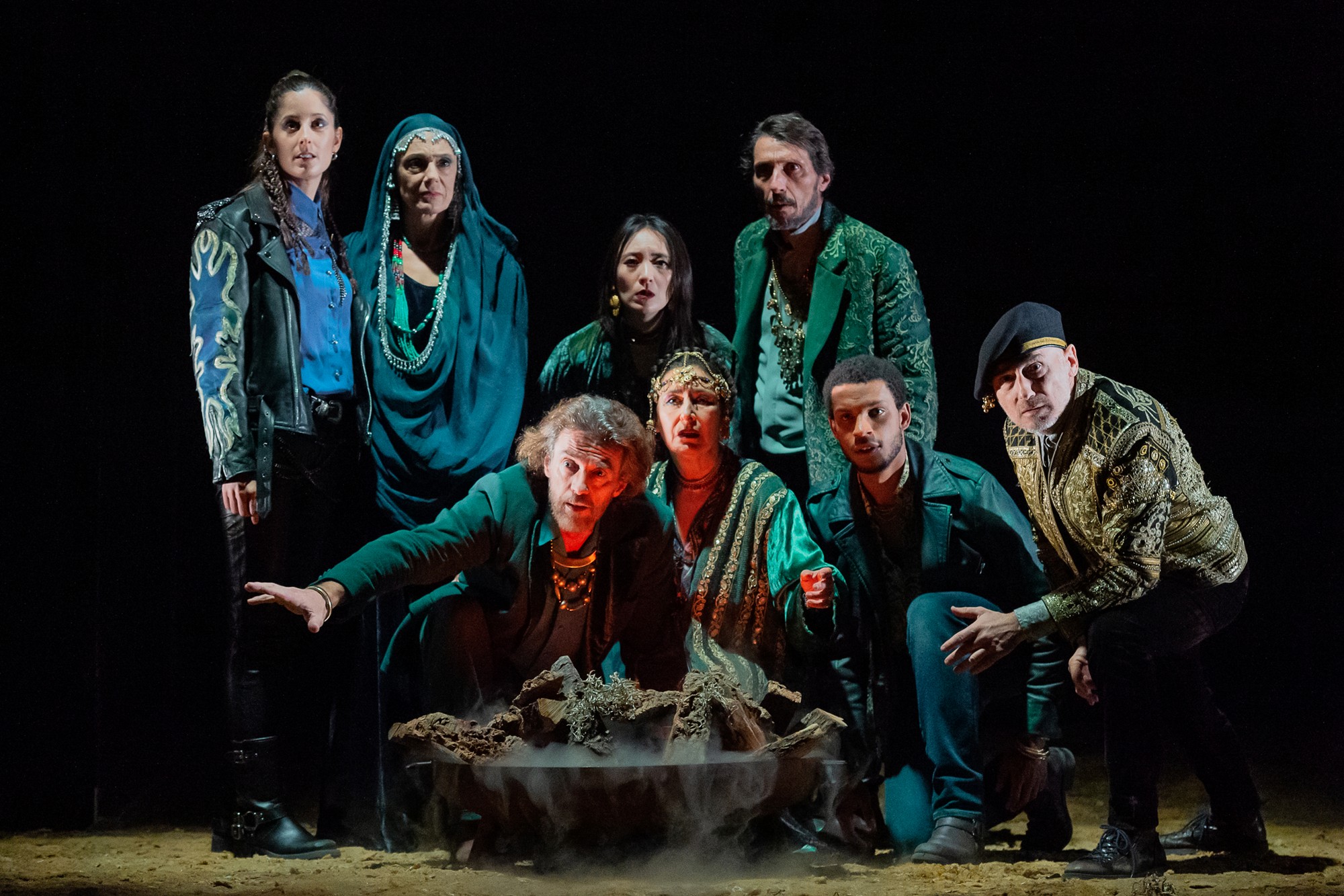 La compagnia lavora come un ensemble organico. Alessio Boni attraversa i due ruoli principali con un’intensità che alterna esplosioni e sottrazioni passando dal Zeus tonante e smemorato al dolore trattenuto di Achille senza mai cedere all’eccesso. Antonella Attili costruisce una Era stratificata, comica e drammatica insieme, madre ferita e moglie insofferente, capace di conquistare la scena con naturalezza e precisione. Intorno a loro si muovono interpreti versatili: Marcello Prayer lega più ruoli con un rigore che dà continuità all’intera architettura dello spettacolo; Haroun Fall e Jun Ichikawa si distinguono per energia, misura e capacità di scivolare da un personaggio all’altro senza perdere intensità.