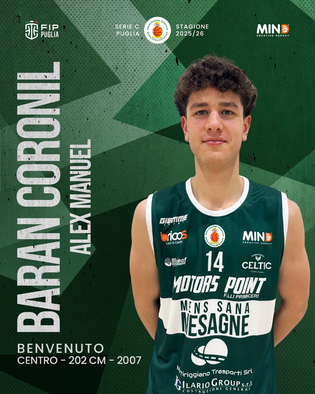 La Mens Sana Mesagne dà il benvenuto ad Alex Manuel Baran Coronil, centro classe 2007, 202 cm, proveniente dal Club Félix Pérez Cardozo (Paraguay).