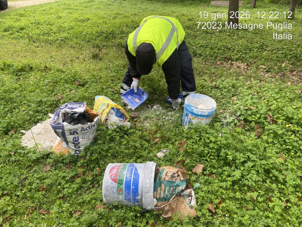 Il prof. Badino ha raccontato così l’accaduto: «Del parco Baden-Powell, quello antistante lo stadio di Mesagne, ho scritto un mese fa denunciando la presenza di rifiuti abbandonati. In quell’occasione il Comune e Gial Ambiente, l’azienda che gestisce la raccolta dei rifiuti, si sono mostrati estremamente solleciti nell’intervenire per ripulire l’area indicata e la situazione è rimasta sotto controllo fino a ieri, 18 gennaio, quando qualcuno si è liberato, in maniera ovviamente illegale, di una grande quantità di materiale edile.