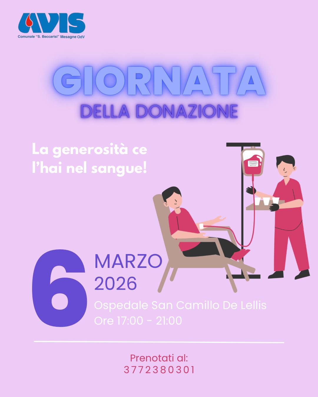Se la generosità ce l’hai nel sangue, è il momento di dimostrarlo! AVIS Mesagne ODV ti aspetta per la giornata della donazione venerdì 6 marzo dalle 17:00 alle 21:00 presso l’Ospedale di Mesagne.