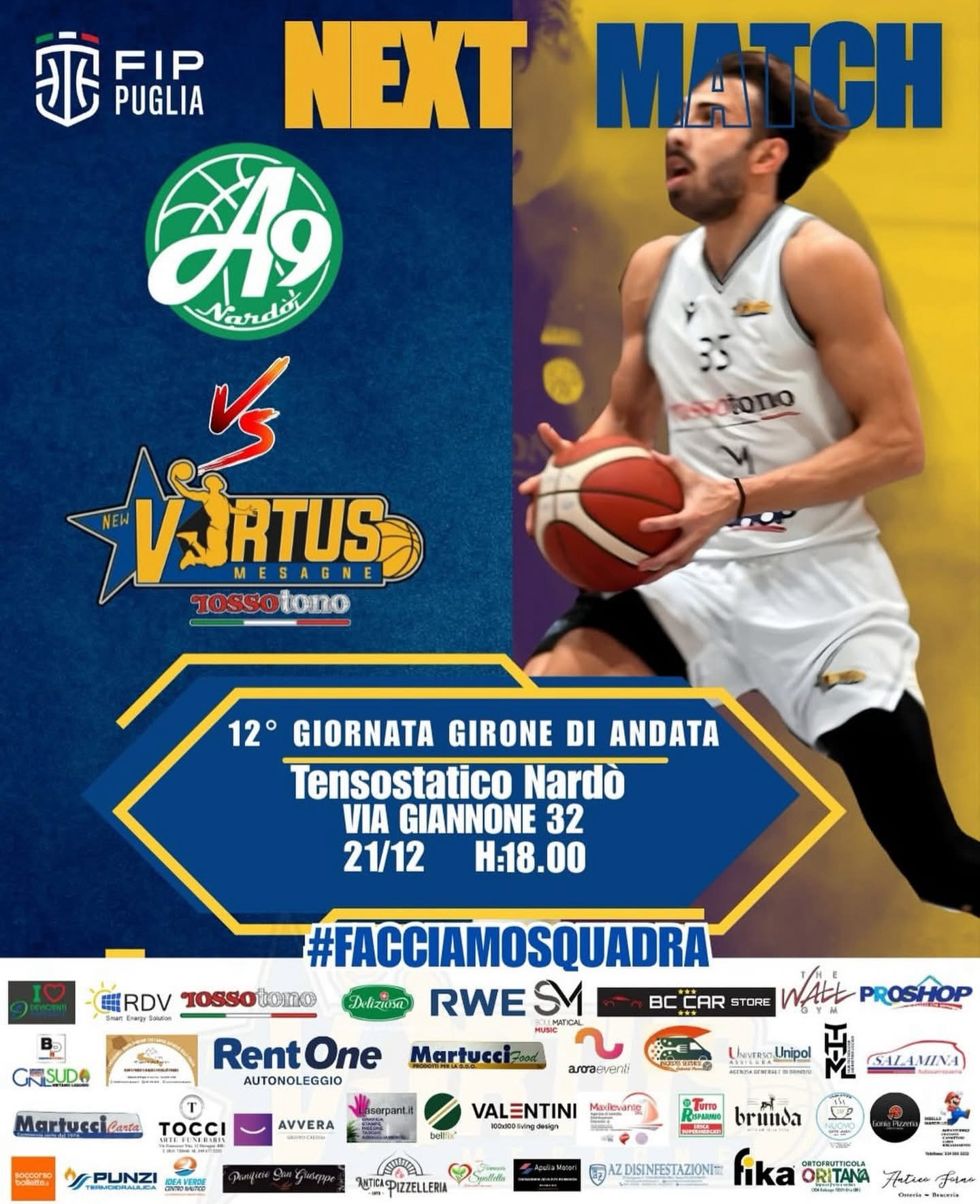 La Rossotono New Virtus Mesagne chiude il 2025 con il big match sul campo della capolista A9 Nardo, ancora imbattuta sino ad ora.