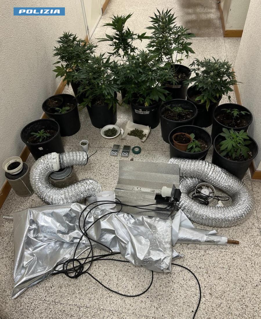 In particolare, la Squadra Mobile della Questura di Brindisi, con l’ausilio dei cinofili della Polizia di Frontiera del capoluogo, venuta a conoscenza che presso l’abitazione dei due arrestati potesse essere stata allestita una piantagione “indoor” di marijuana le cui infiorescenze venivano poi immesse sul mercato illegale della droga, hanno effettuato una perquisizione domiciliare che ha permesso effettivamente di rinvenire e sequestrare n. 2 “grow box” munite di lampade e termometri, n. 12 piante di varie dimensioni di marijuana, un quantitativo di 32,72 grammi di infiorescenze di marijuana, 1,66 grammi di hashish e 36,88 grammi di semi, oltre che due bilancini di precisione e materiale per il confezionamento dello stupefacente.