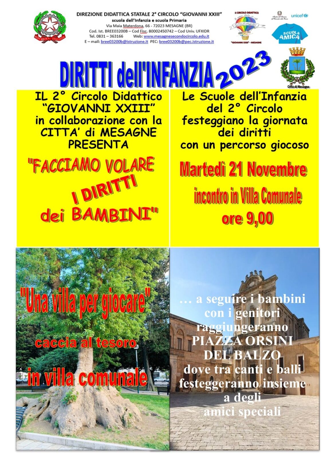 Domani, Martedì 21 Novembre alle ore 11.00 in piazza Orsini del Balzo, le Scuole dell’Infanzia del Secondo Circolo “Giovanni XXIII”, celebrano la ricorrenza della Giornata dei diritti di bambine e …