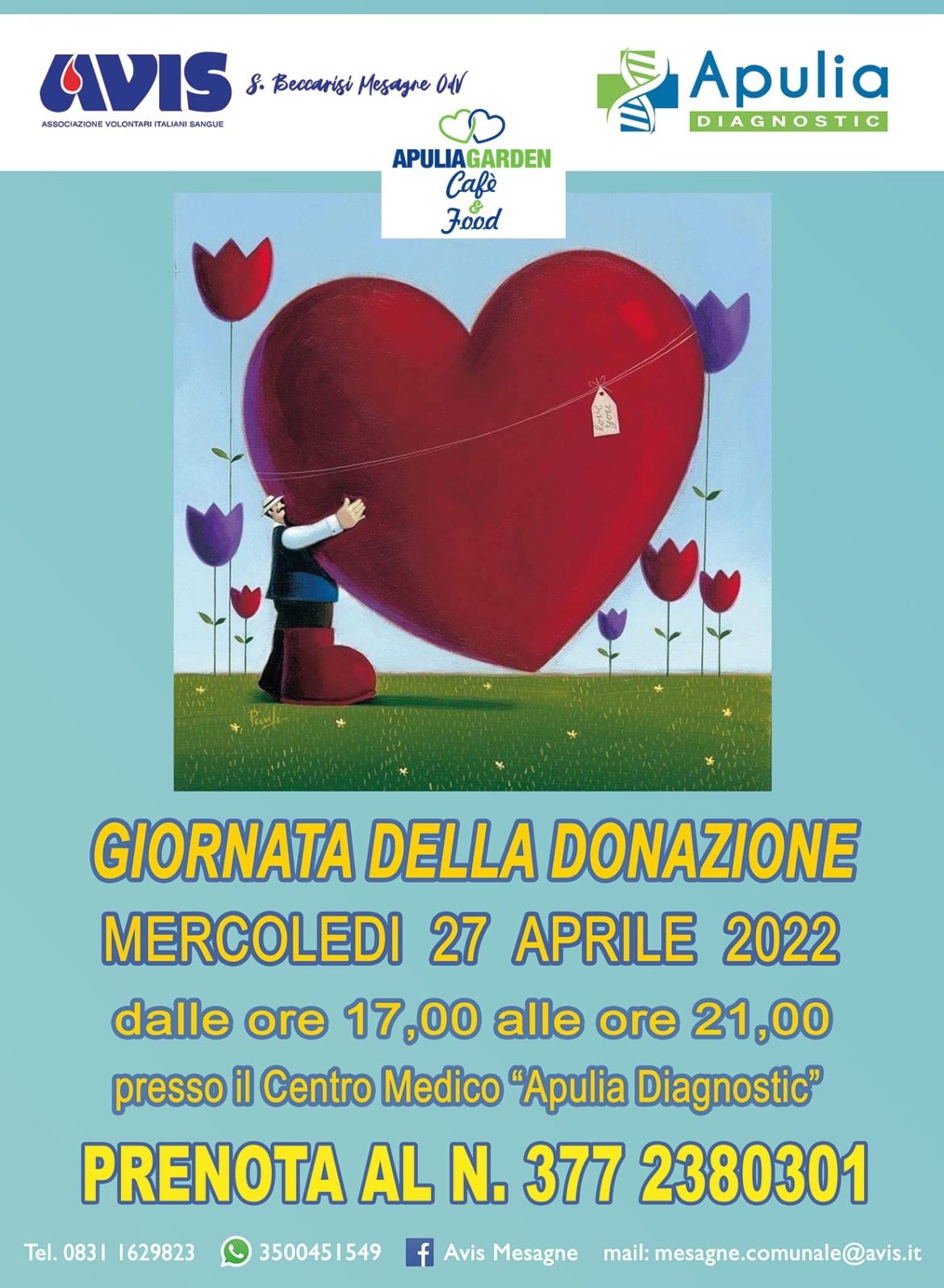 Mercoledì 27 aprile, dalle ore 17.00 alle 21.00, presso il centro medico Apulia Diagnostic giornata della donazione del sangue. L’Avis territoriale di Mesagne, con la collaborazione di Apulia Diagnostic e Apulia …