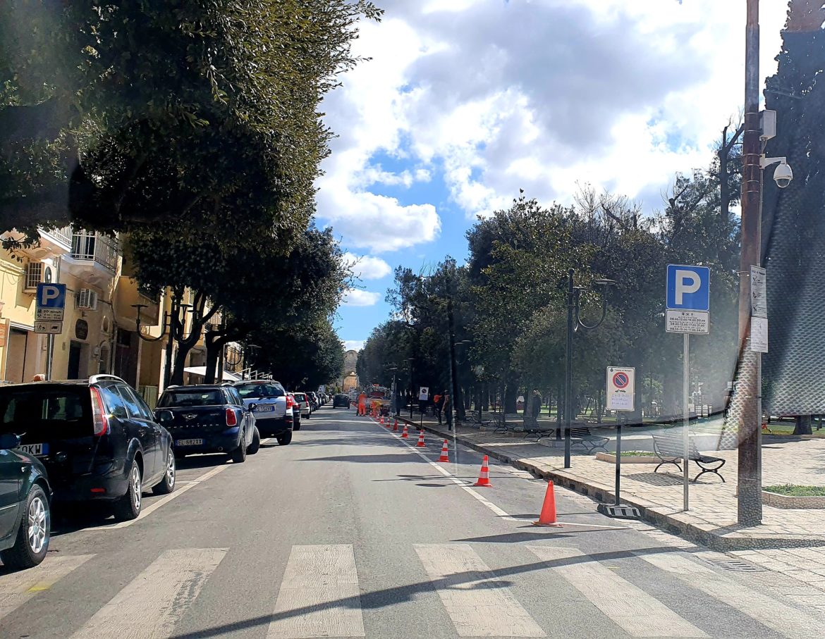 Questa mattina gli operai della ditta incaricata della gestione dei parcheggi a pagamento stanno provvedendo a trasformare da bianche a blu le strisce di sosta di via Ten. Ugo Granafei …