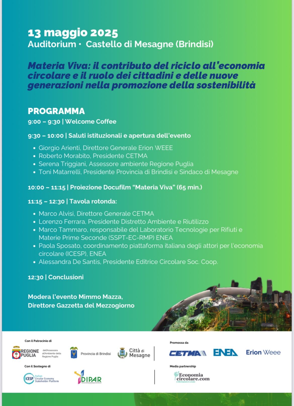Il 13 maggio 2025 un evento promosso da CETMA, Enea ed Erion WEEE dedicato alle Istituzioni e agli studenti presso l’Auditorium del Castello di Mesagne (BR). Il 13 maggio 2025 a partire dalle 9.30, presso l’Auditorium del Castello di …