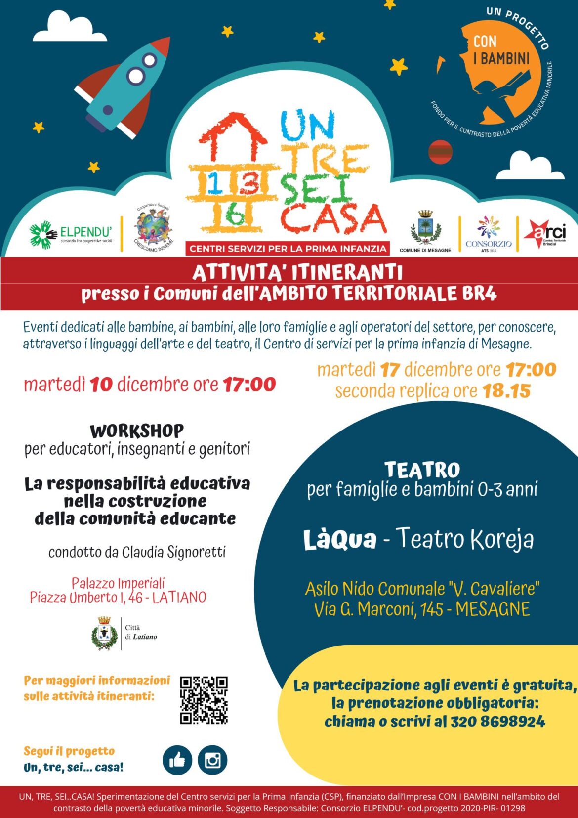 Al via i workshop e gli eventi diffusi del progetto UN, TRE, SEI ..CASA!, finanziato dall’Impresa Sociale CON I BAMBINI. Il progetto sta sperimentando nelle Città di Mesagne un Centro …