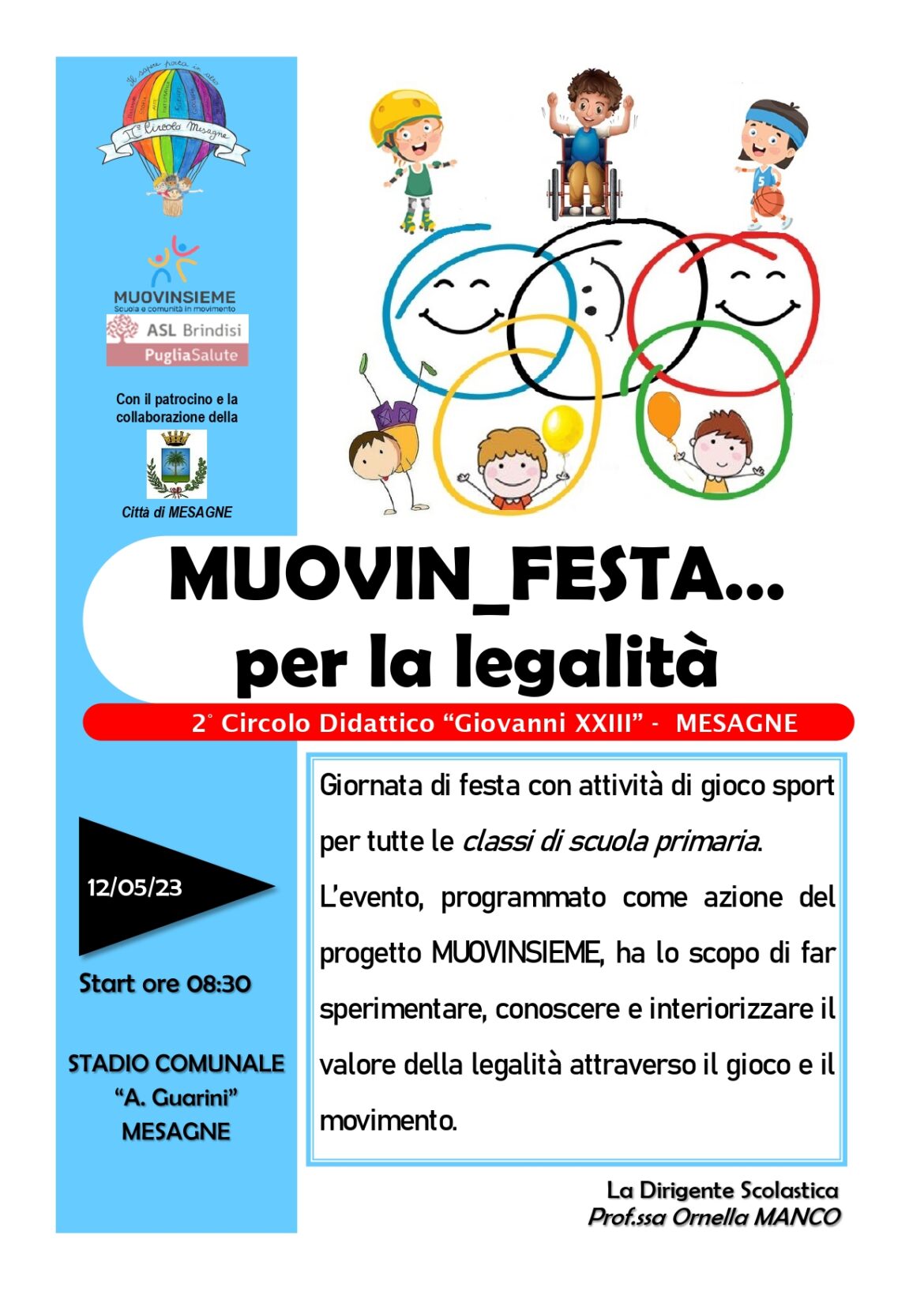 “MUOVIN_FESTA… per la legalità” è una giornata di festa con attività di gioco-sport per tutte le classi di scuola primaria. L’evento, che si svolgerà presso lo Stadio Comunale “A. Guarini” …