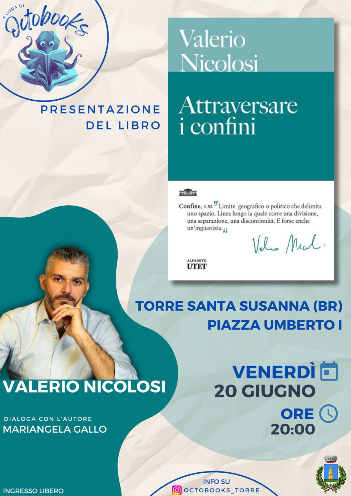 Venerdì 20 giugno 2025, alle ore 20:00, in Piazza Umberto I, il gruppo di lettura Octobooks è lieto di ospitare il fotografo, regista e reporter Valerio Nicolosi per la presentazione …