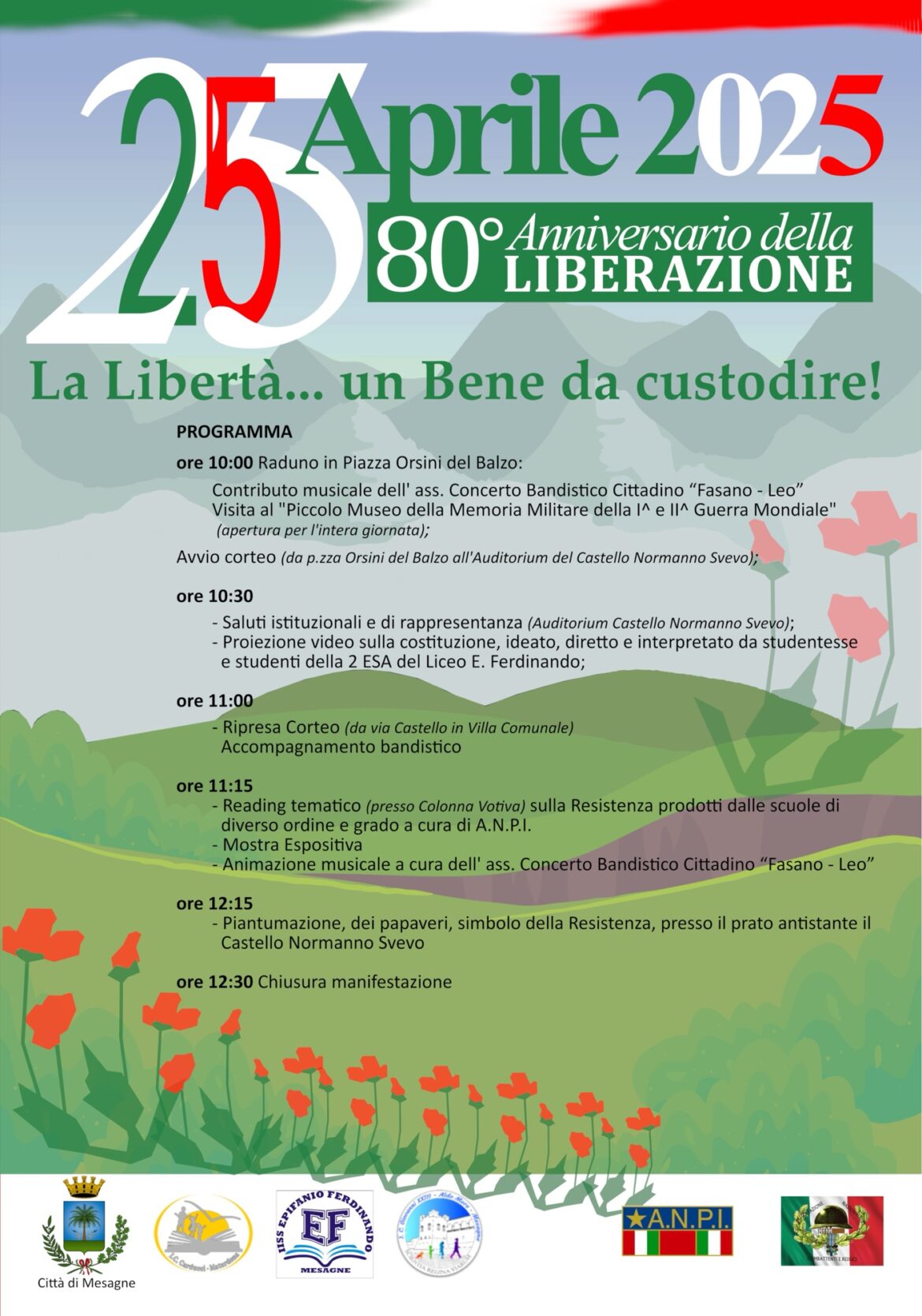 Il prossimo 25 aprile, Mesagne si prepara a celebrare l’80° Anniversario della Liberazione con una giornata ricca di momenti commemorativi intitolata “La Libertà… Un Bene da custodire!!”. Un’occasione per riflettere …