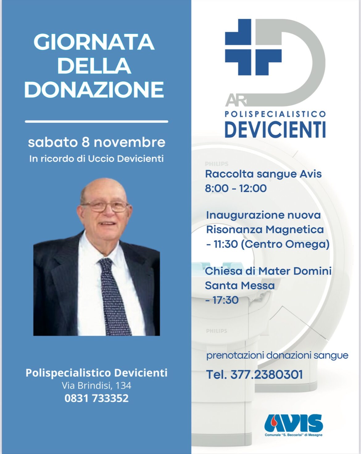 Sabato 8 novembre 2025 si terrà la Giornata della Donazione in ricordo di Uccio Devicienti, fondatore del Centro Diagnostico Omega di Mesagne, una figura che ha lasciato un segno profondo …
