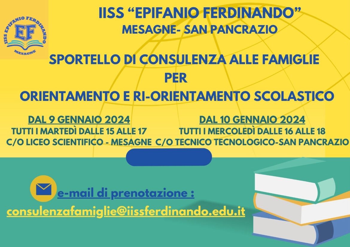 Si comunica a tutti i genitori degli studenti frequentanti l’ultimo anno della scuola secondaria di primo grado che, a partire da gennaio 2024, l’IISS “Epifanio Ferdinando” attiverà uno sportello di …
