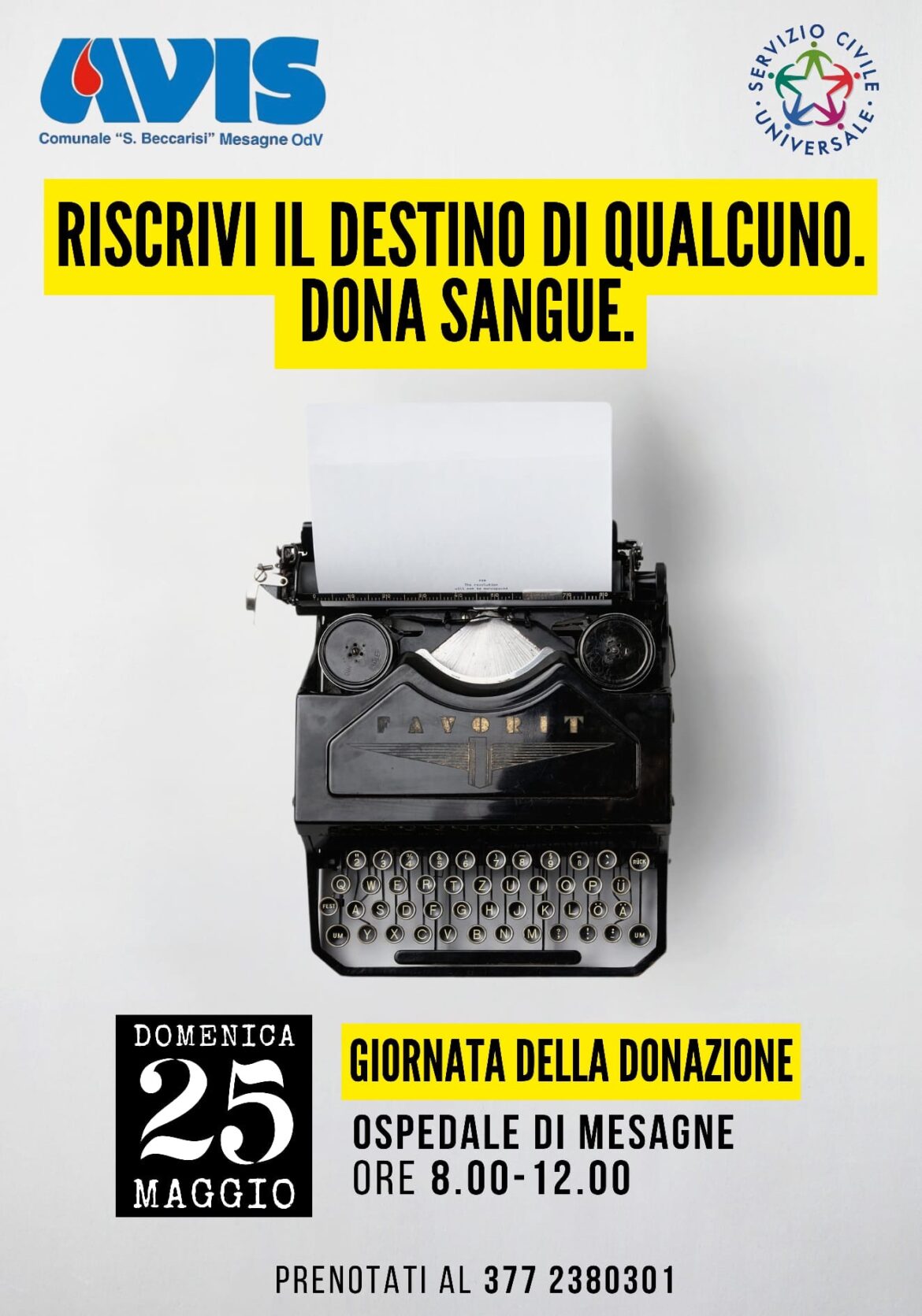 Riscrivi il destino di qualcuno, dona sangue con Avis Mesagne OdV! Vieni a donare con AVIS Mesagne domenica 25 maggio 2025 dalle ore 8 alle ore 12 presso il punto …