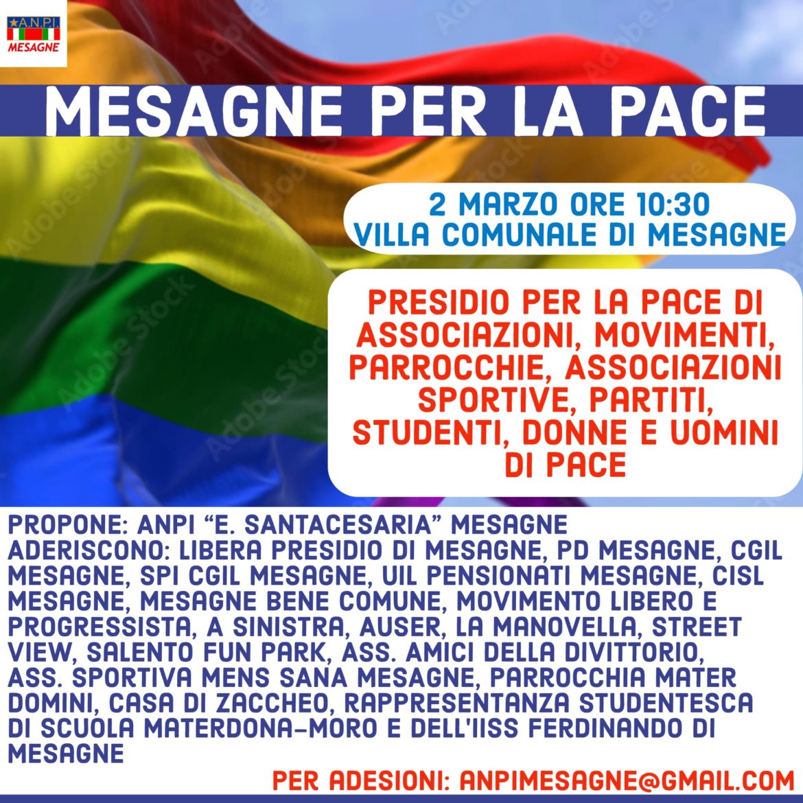 Domani, Mercoledì 2 marzo 2022 dalle ore 10.30, presso la Villa Comunale, l’IISS Epifanio Ferdinando di Mesagne parteciperà al Presidio per la Pace, organizzato da ANPI Mesagne, nel rispetto delle …