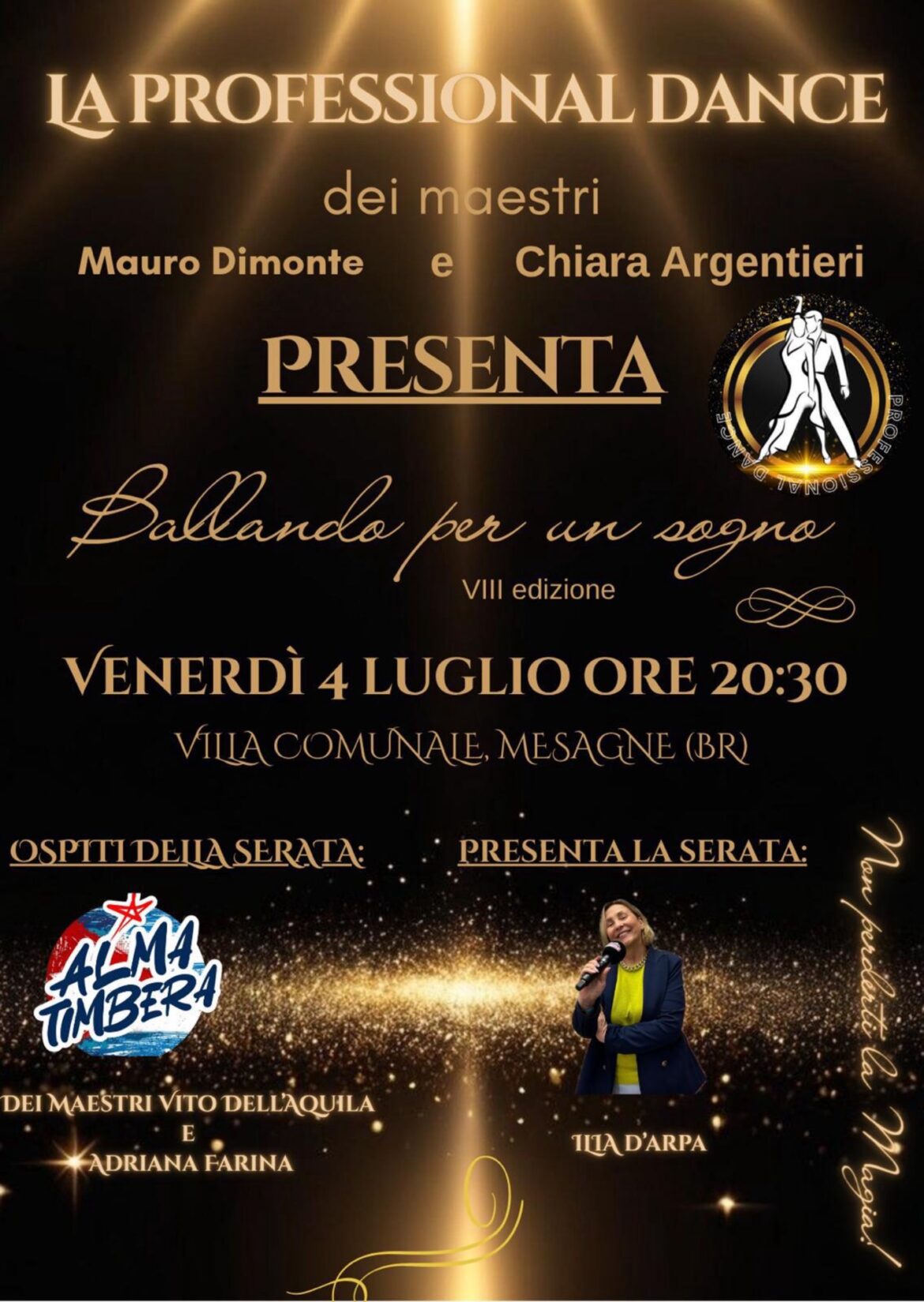 Venerdì 4 luglio, dalle ore 20:30, l’accogliente spazio della Villa Comunale di Mesagne ospiterà l’ottava edizione di “Ballando Per Un Sogno”. L’evento, ideato e presentato dalla scuola di ballo Asd …