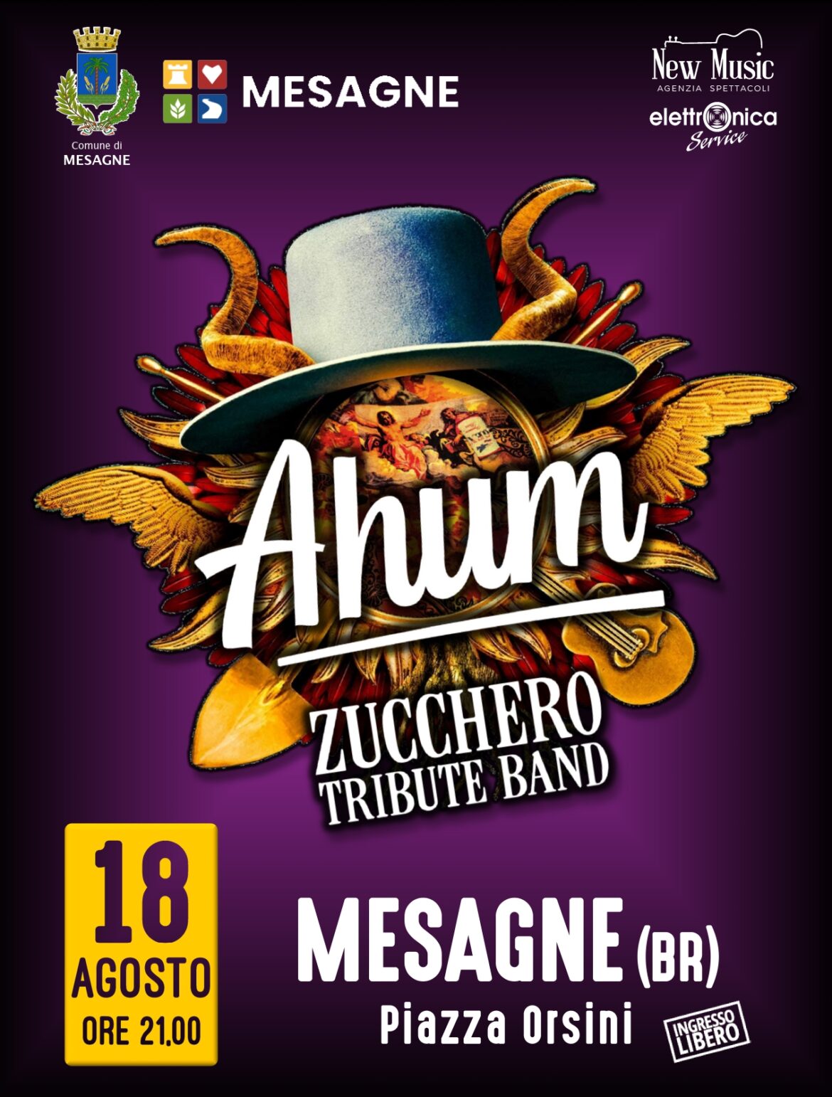 Lunedì 18 agosto alle ore 21:00, l’estate mesagnese si accende con il concerto in piazza Orsini del Balzo degli AHUM – Zucchero Tribute Band. La band, nota per la fedeltà e l’energia …