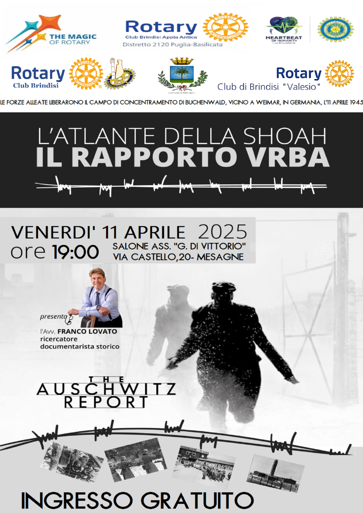 In occasione dell’ottantesimo anniversario della liberazione del campo di concentramento di Buchenwald, la città di Mesagne ospiterà un incontro di valore storico e civile. L’evento, promosso in interclub dai Rotary …