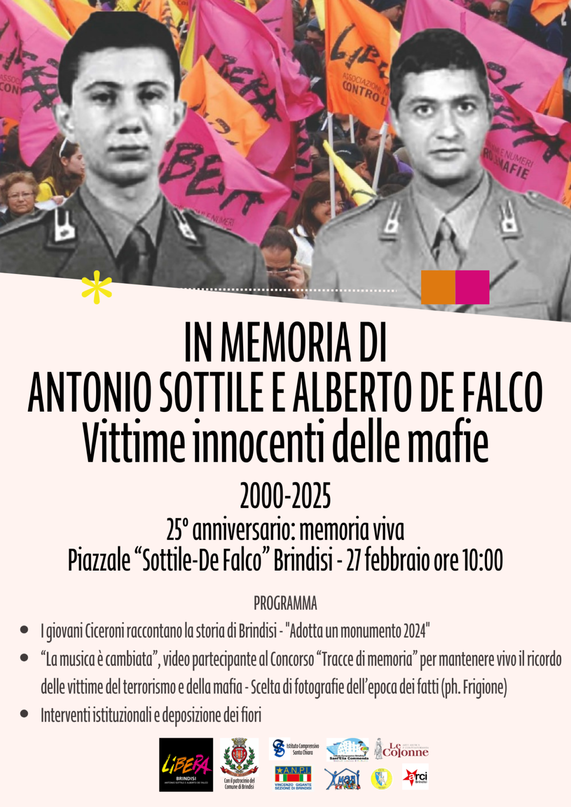 Giovedì 27 febbraio 2025, a partire dalle ore 10.00 nella piazza Sottile-De Falco, antistante Palazzo Granafei-Nervegna, il Presidio Libera di Brindisi a loro intitolato organizza con le scuole, le realtà …