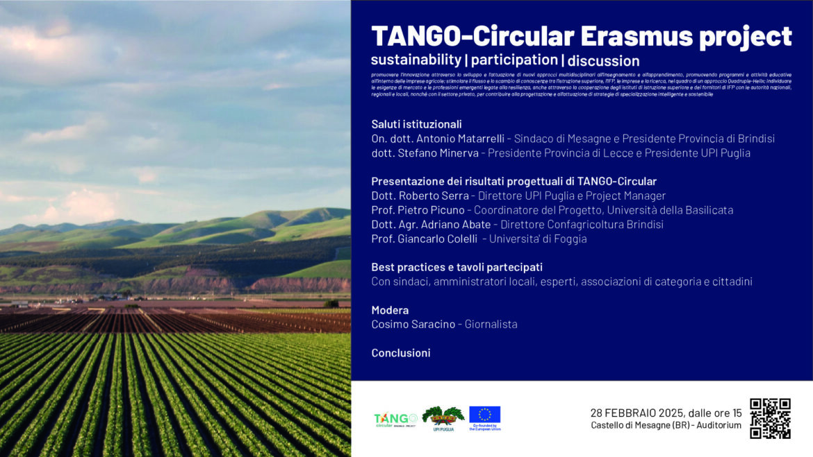 UPI Puglia è partner del progetto “TANGO-Circular”, finanziato dal Programma Erasmus+ che ha la finalità di contribuire allo sviluppo sostenibile di eco-sistemi territoriali con un approccio partecipativo che coinvolge le …