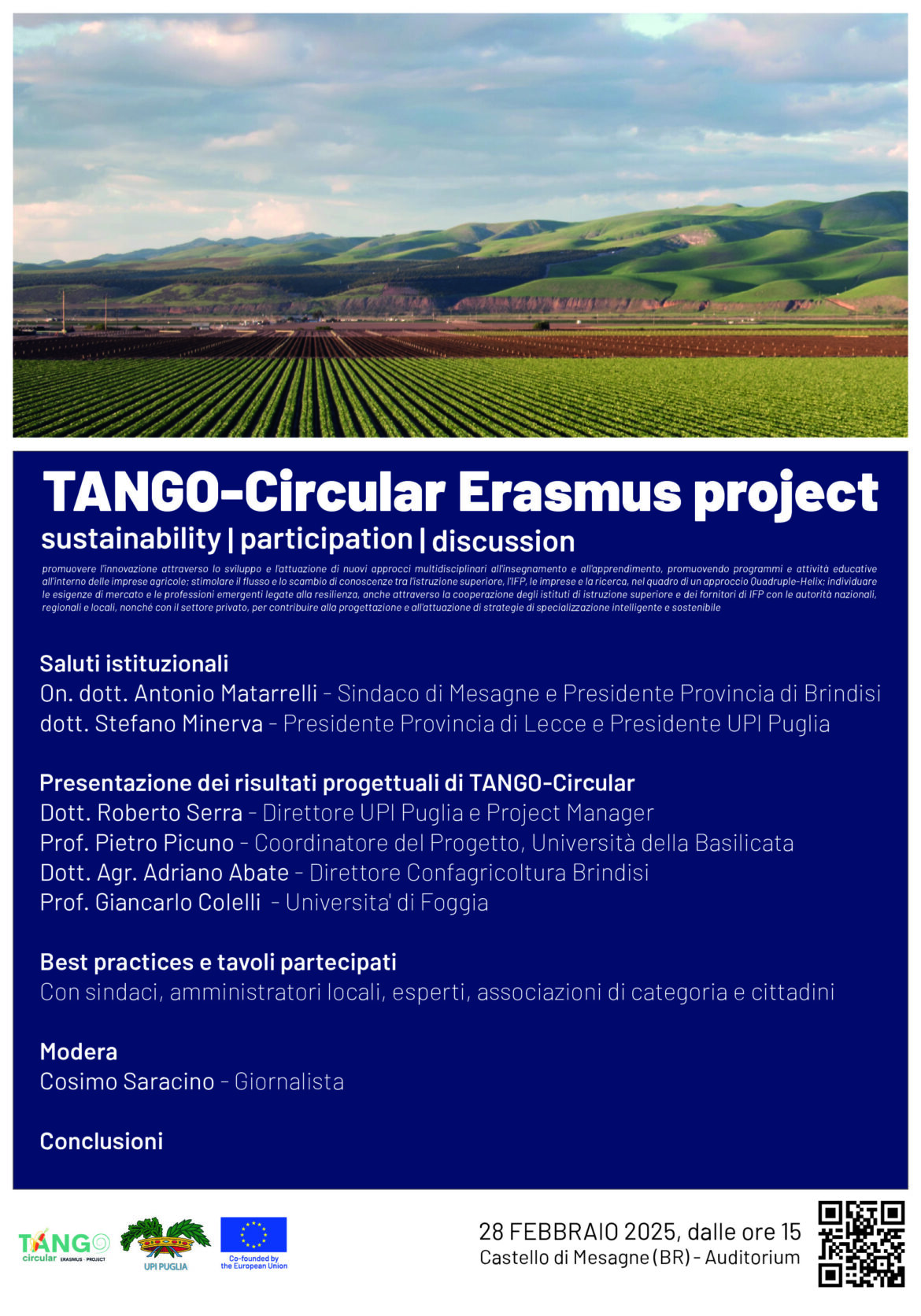 Tutto pronto per il 28 febbraio, con la Puglia protagonista degli incontri partecipati di Tango-Circular, progetto finanziato dal programma Erasmus+ con l’obiettivo di offrire una formazione specifica agli operatori agricoli …