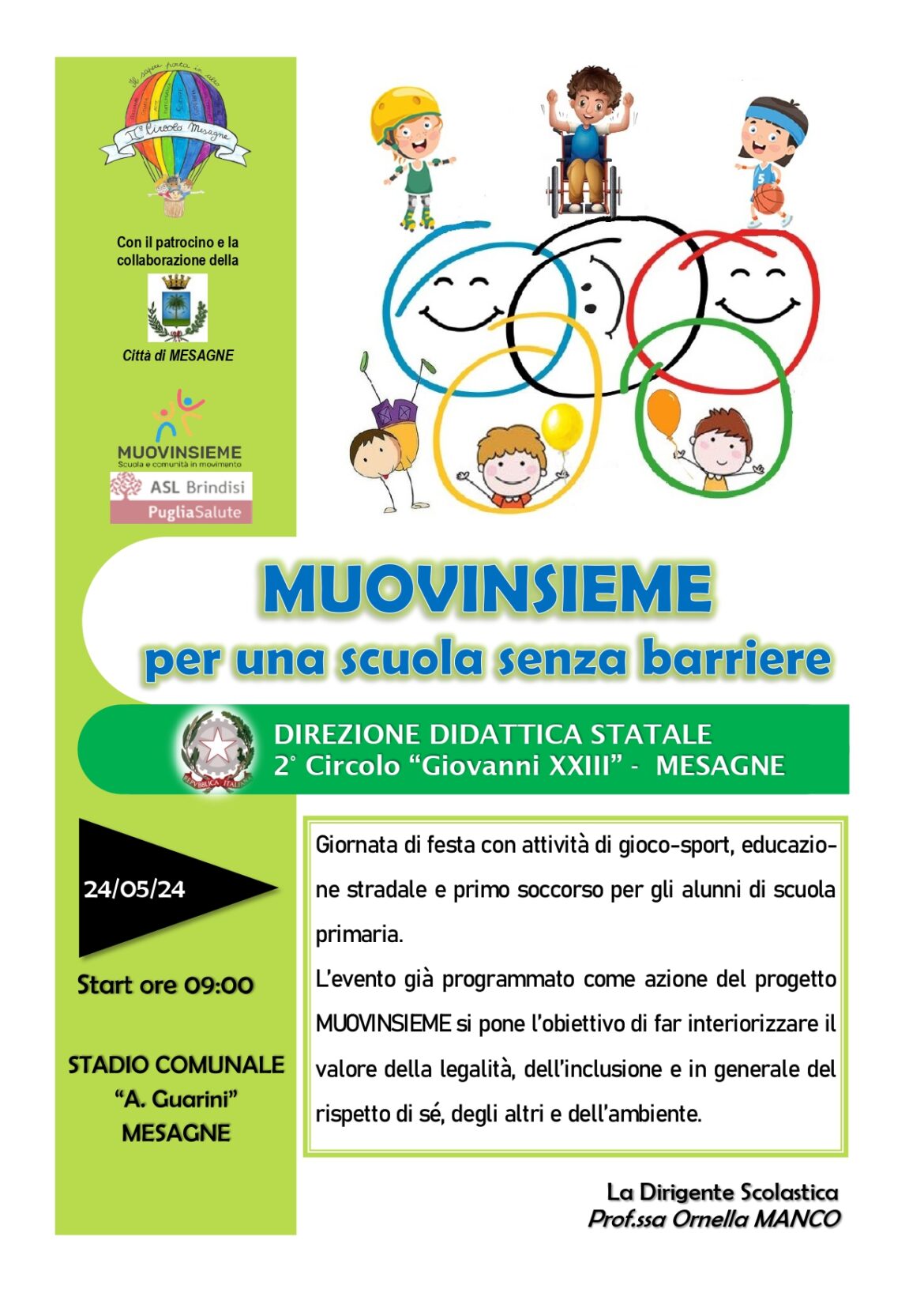 “MUOVINSIEME… per una scuola senza barriere” è una giornata di festa con attività di gioco- sport, educazione stradale e primo soccorso per tutte le classi delle scuole primarie “Giovanni XXIII” …