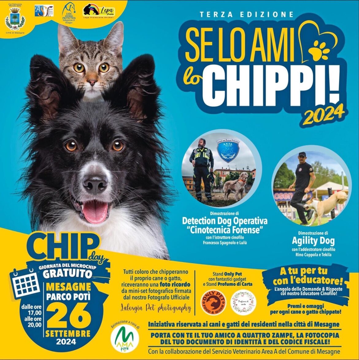 Giovedi 26 settembre, dalle 17,00 alle 20,00, presso i giardini di Parco Potì, a Mesagne, si svolgerà la TERZA EDIZIONE DI “SE LO AMI LO CHIPPI – 2024”, rivolta a …