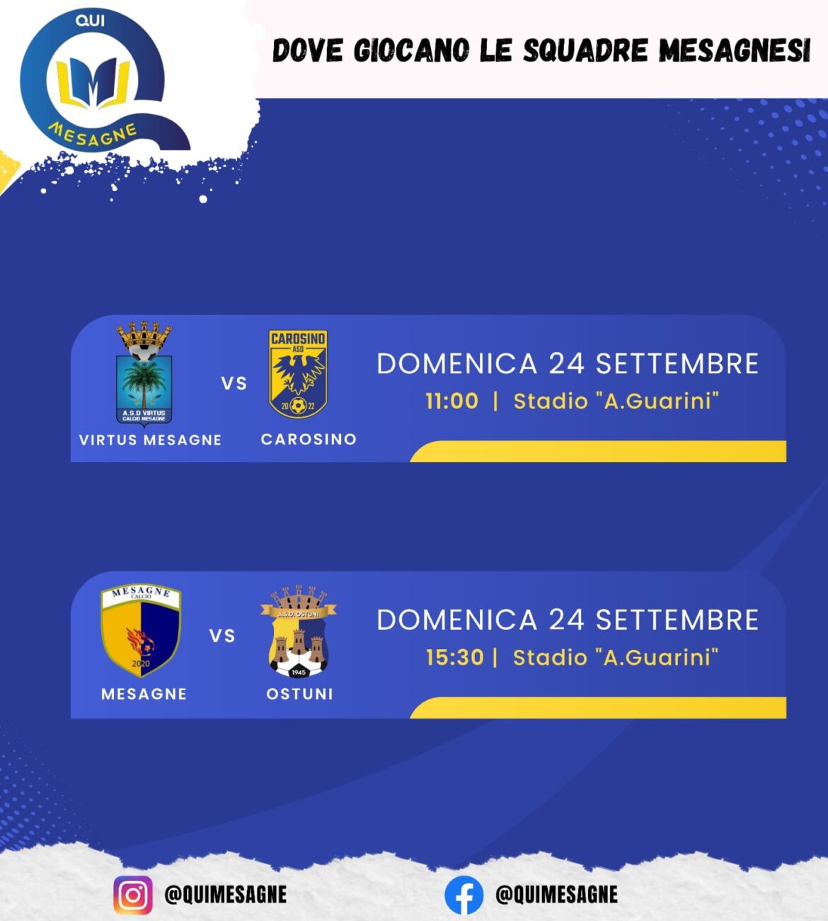 (di Luca Pulieri) – Impegni casalinghi per entrambe le formazioni mesagnesi in questo weekend. La Virtus Calcio Mesagne comincia ufficialmente la sua avventura per il secondo anno consecutivo nel campionato …
