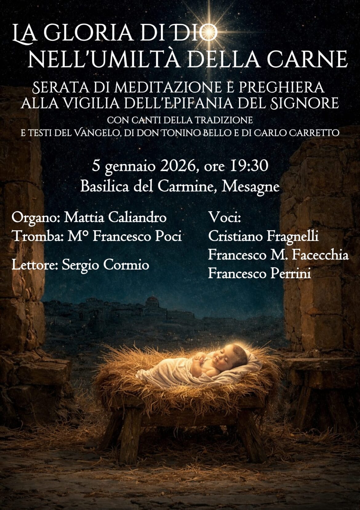 Una serata all’insegna della preghiera e della meditazione quella proposta da un gruppo di giovani amici per il prossimo 5 gennaio nella Basilica del Carmine alle ore 19:30, un’occasione preziosa …