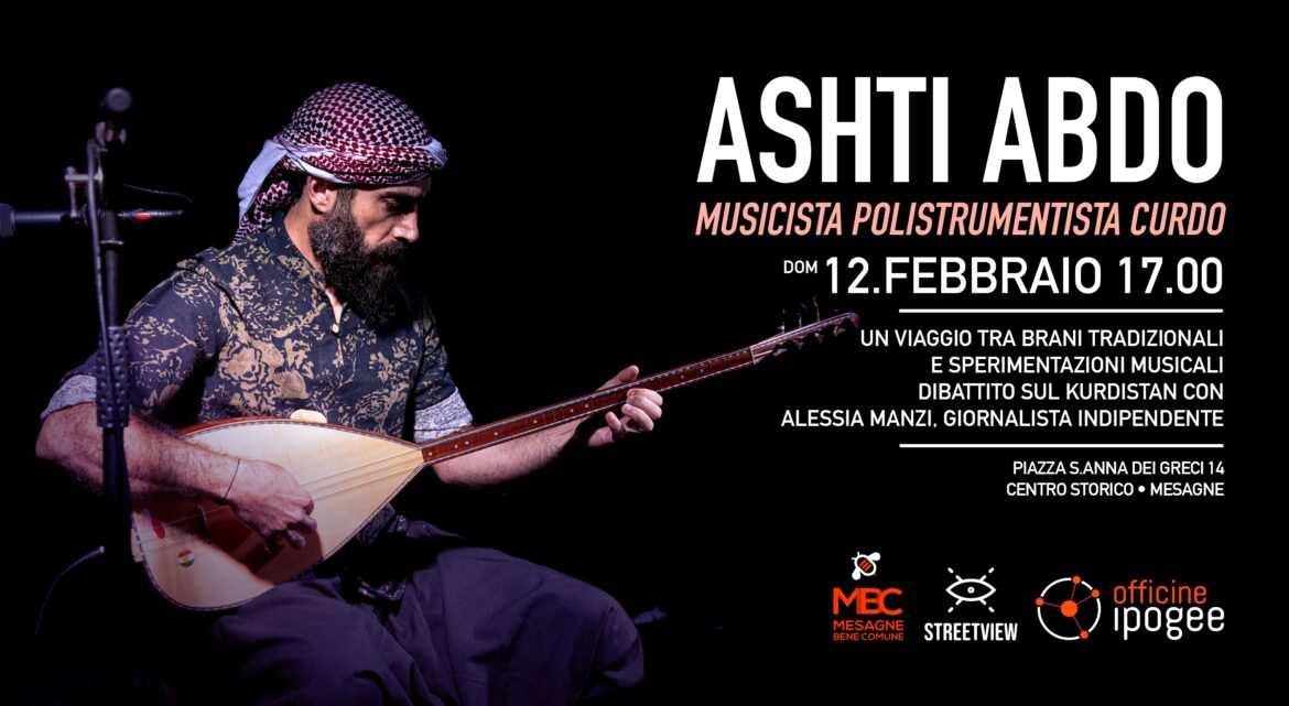 Domenica 12 febbraio h. 17 Concerto di Ashti Abdo, musicista polistrumentista Curdo Precede il concerto un dibattito sul Kurdistan con Alessia Manzi. Giornalista indipendente si occupa principalmente di migrazioni, diritti …