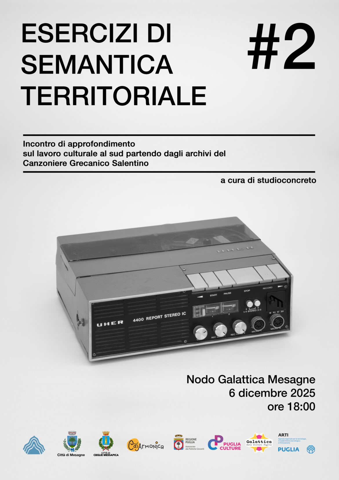 Il Nodo Galattica di Mesagne si prepara a ospitare un incontro di grande rilevanza culturale: “Esercizi di Semantica Territoriale #2”, a cura di Luca Coclite e Laura Perrone (studioconcreto). L’appuntamento …