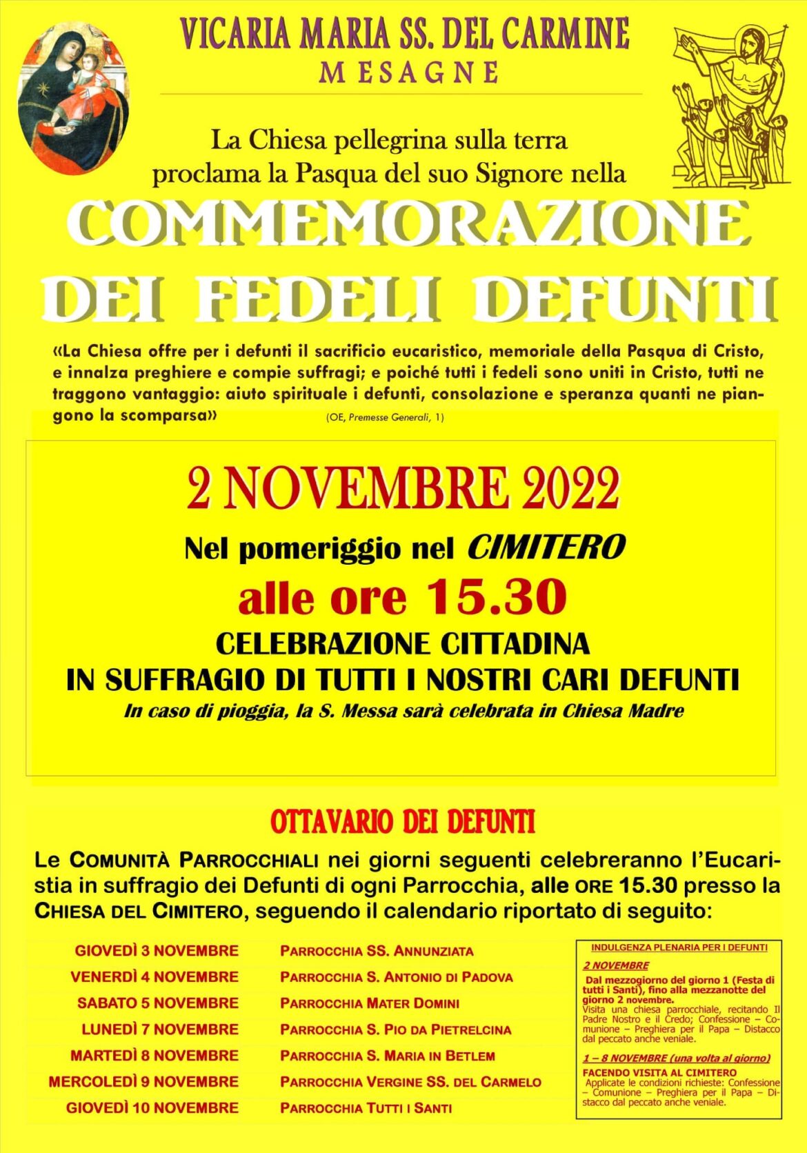 L’ufficio servizi cimiteriali del Comune di Mesagne informa che nei giorni da domenica 30 ottobre a mercoledì 2 novembre il Cimitero Comunale resterà aperto ai visitatori con orario continuato dalle …
