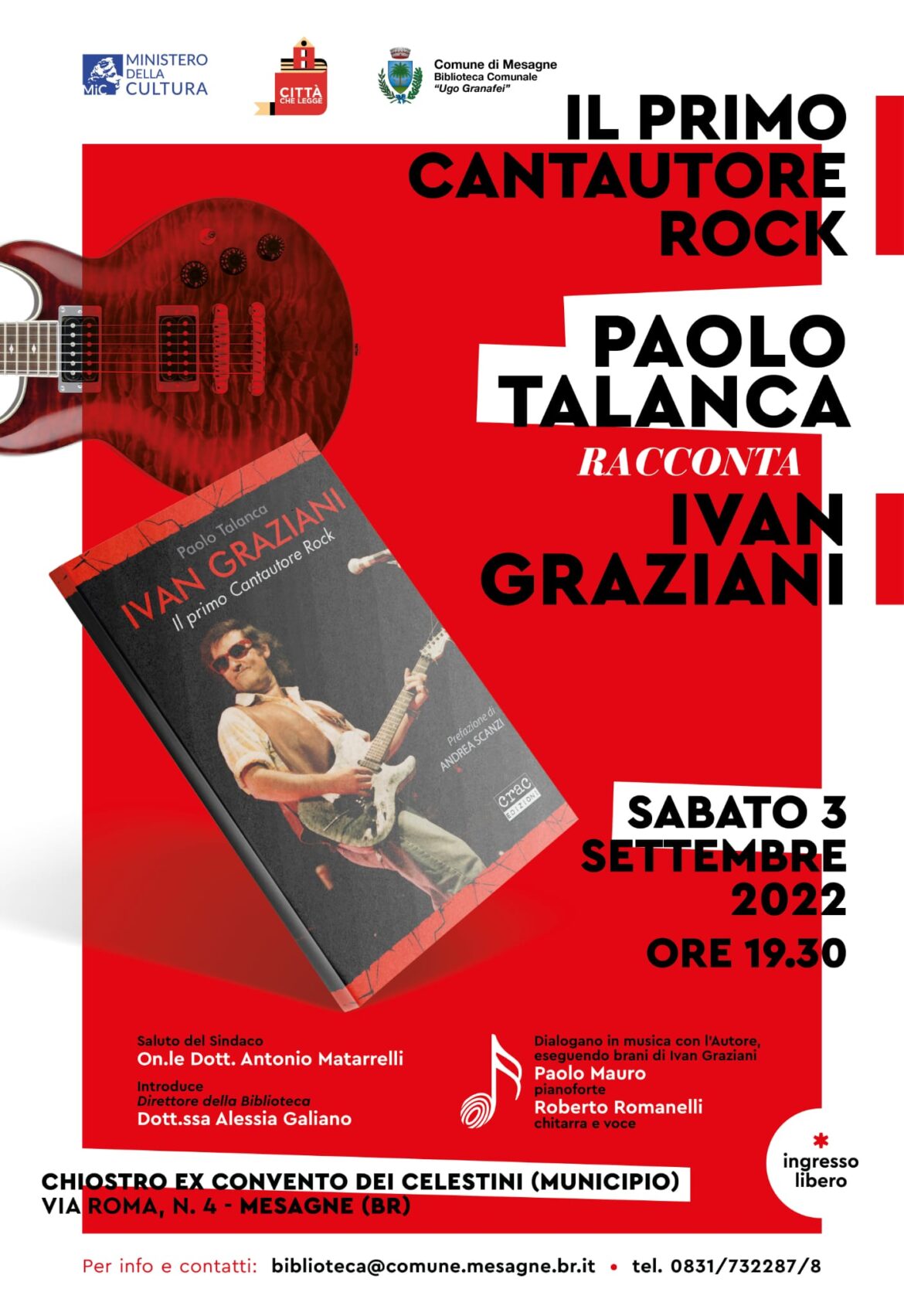 “Il primo cantautore rock” è il libro di Paolo Talanca, Crac edizioni, che racconta il grande Ivan Graziani. L’autore lo presenta a Mesagne sabato3 settembre alle ore 19.30 nel Chiostro dell’ex Convento dei Cappuccini, …
