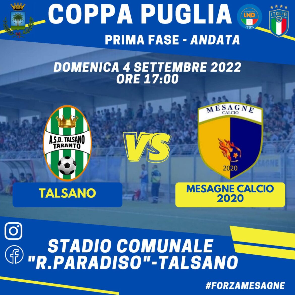 Domenica 4 settembre il Mesagne Calcio inizia ufficialmente la sua stagione, affrontando in trasferta il Talsano, nella gara valevole per il primo turno di Coppa Puglia. La partita avrà inizio …