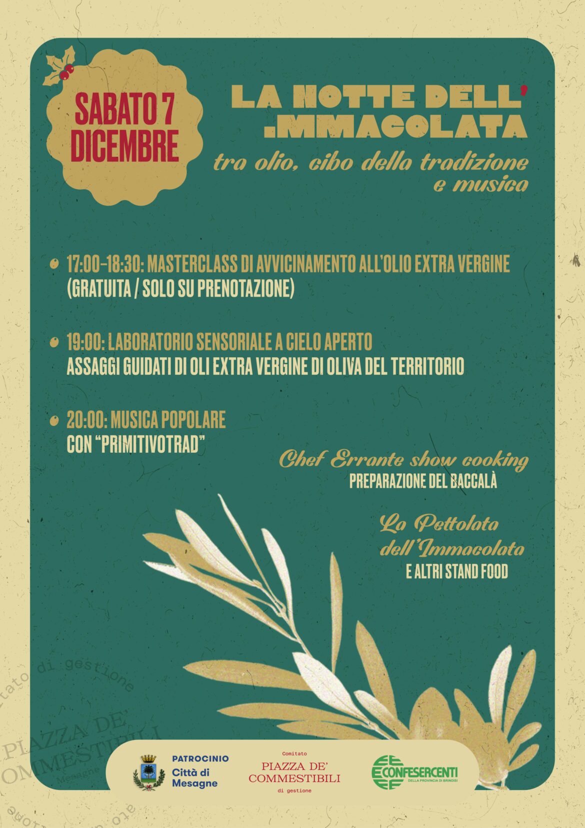 Arriva dicembre e si avvicina la prima delle serate delle “Feste Insieme” sabato 7 dicembre a Mesagne in Piazza Commestibili. La notte dell’immacolata da il via alle festività natalizie e …