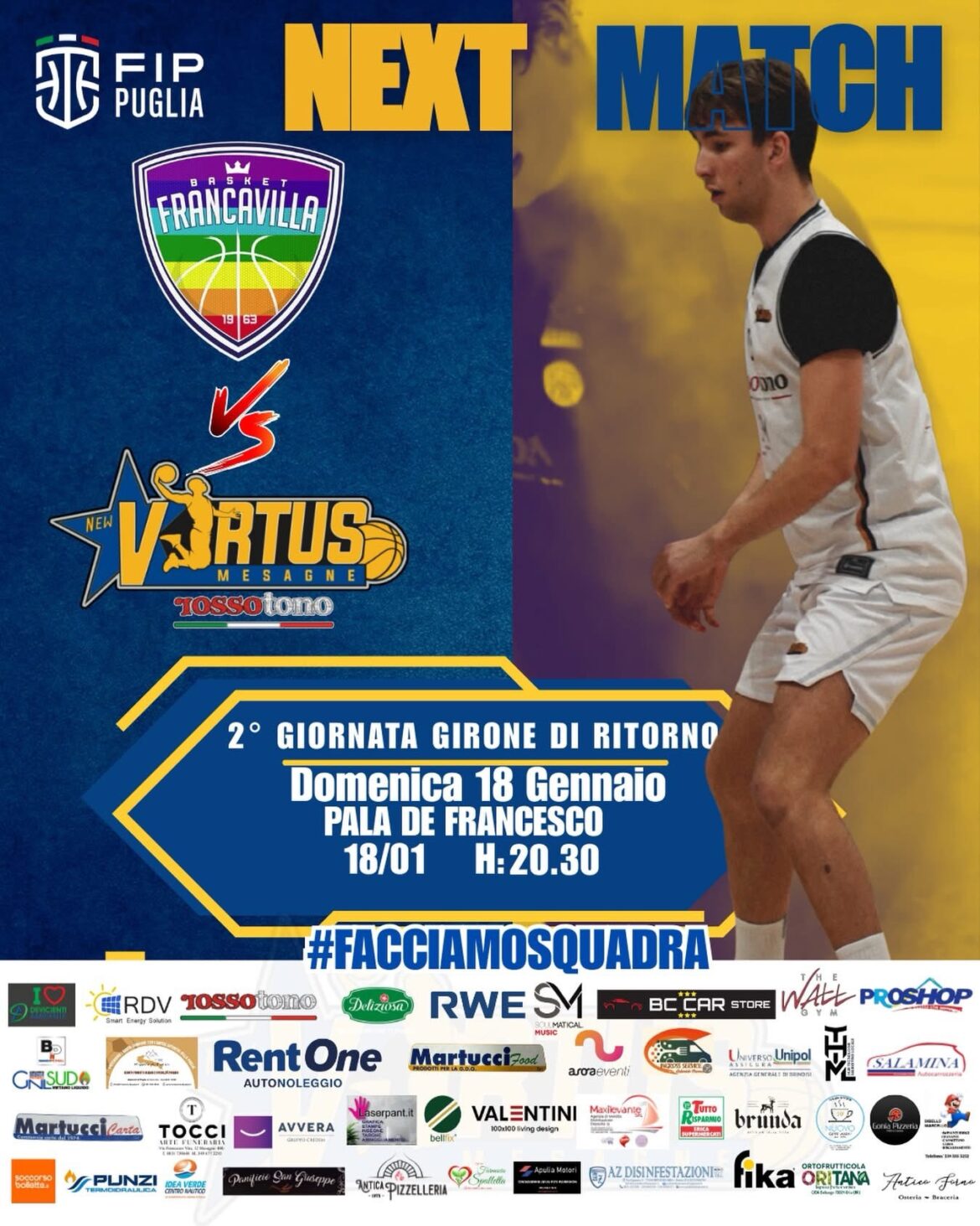 Considerato il perdurare della indisponibilità del palazzetto di Francavilla Fontana, la gara Basket Francavilla – Rossotono New Virtus Mesagne si giocherà Domenica 18 Gennaio ore 20:30 presso il Paladefrancesco di …