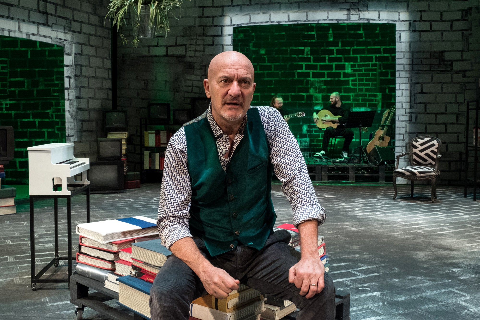 In scena Bisio è affiancato dai musicisti Marco Bianchi e Pietro Guarracino, che eseguono dal vivo le musiche originali di Paolo Silvestri. La loro presenza costruisce un controcanto che dialoga con la parola e accompagna il filo irregolare del racconto. La forma che ne deriva si avvicina al teatro-canzone, pur senza citazioni: la musica apre e chiude i quadri mettendone in risalto la cornice. La scena è ridotta all’essenziale. Sedie, televisori anni Settanta, libri impilati: un rimando visivo a una generazione che ha visto passare la propria epoca in tv. Oggetti che non creano il senso di ambienti realistici ma funzionano come segni, appigli materiali per la memoria. È una scelta che risponde alla drammaturgia: l’attenzione rimane sul racconto, sulla parola, sul rapporto tra attore e pubblico.