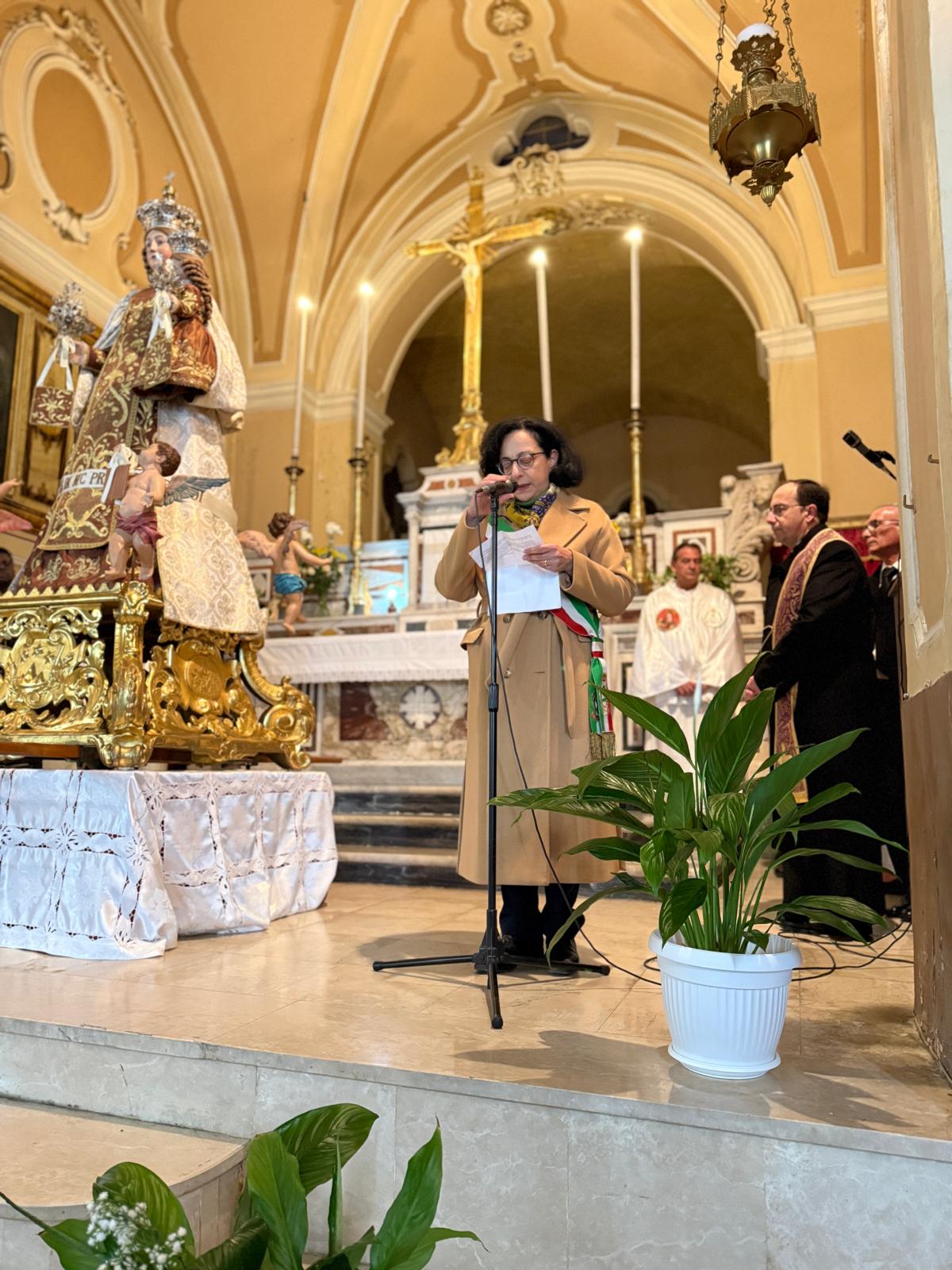 Nel concludere questo mio saluto, auguro a ognuno di voi di vivere questa festa con gioia e serenità. Che la protezione della nostra Patrona possa accompagnare il cammino di questa comunità verso traguardi di crescita, solidarietà e pace. Buona festa della Vergine del Carmelo a tutti voi.
