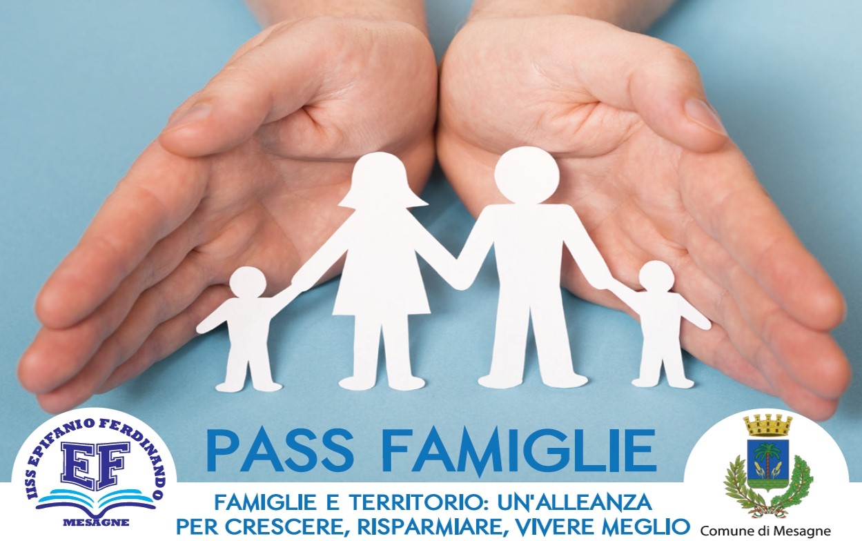 Si informa tutta la cittadinanza mesagnese dell’attivazione della Family Card “Pass Famiglie”, progetto fortemente voluto dall’Amministrazione Comunale di Mesagne, in collaborazione con la Confesercenti, con la Confcommercio, con il C.N.A., con la C.A.P.I.T. e con il Forum delle Associazioni Familiari di Puglia. L’iniziativa nasce con l’obiettivo di creare una vera e propria alleanza tra famiglie e territorio, finalizzata a favorire crescita sociale, opportunità di risparmio e una migliore qualità della vita per la comunità locale. “Pass Famiglie” è una carta completamente gratuita che i cittadini di Mesagne possono ritirare presso la sede dell’Istituto Tecnico Economico “Epifanio Ferdinando”, sito in Via Damiano Chiesa n. 1 e sarà distribuita dagli alunni/e dello stesso Istituto in relazione ad un percorso formativo scolastico, nei seguenti giorni e orari del mese di marzo: