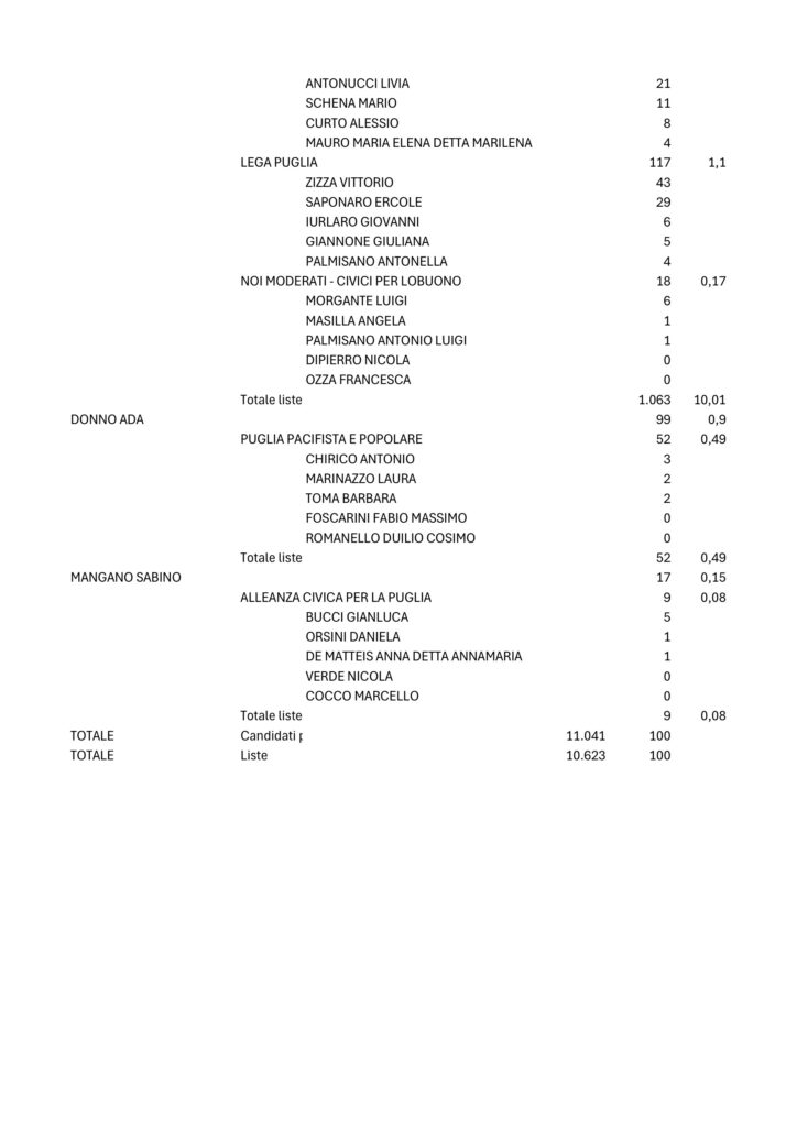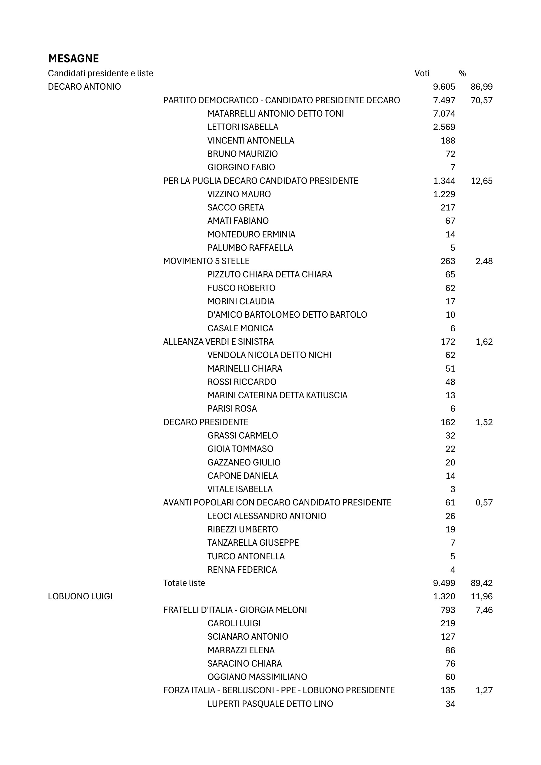 Elezioni Regionali: ecco tutte le preferenze di Mesagne