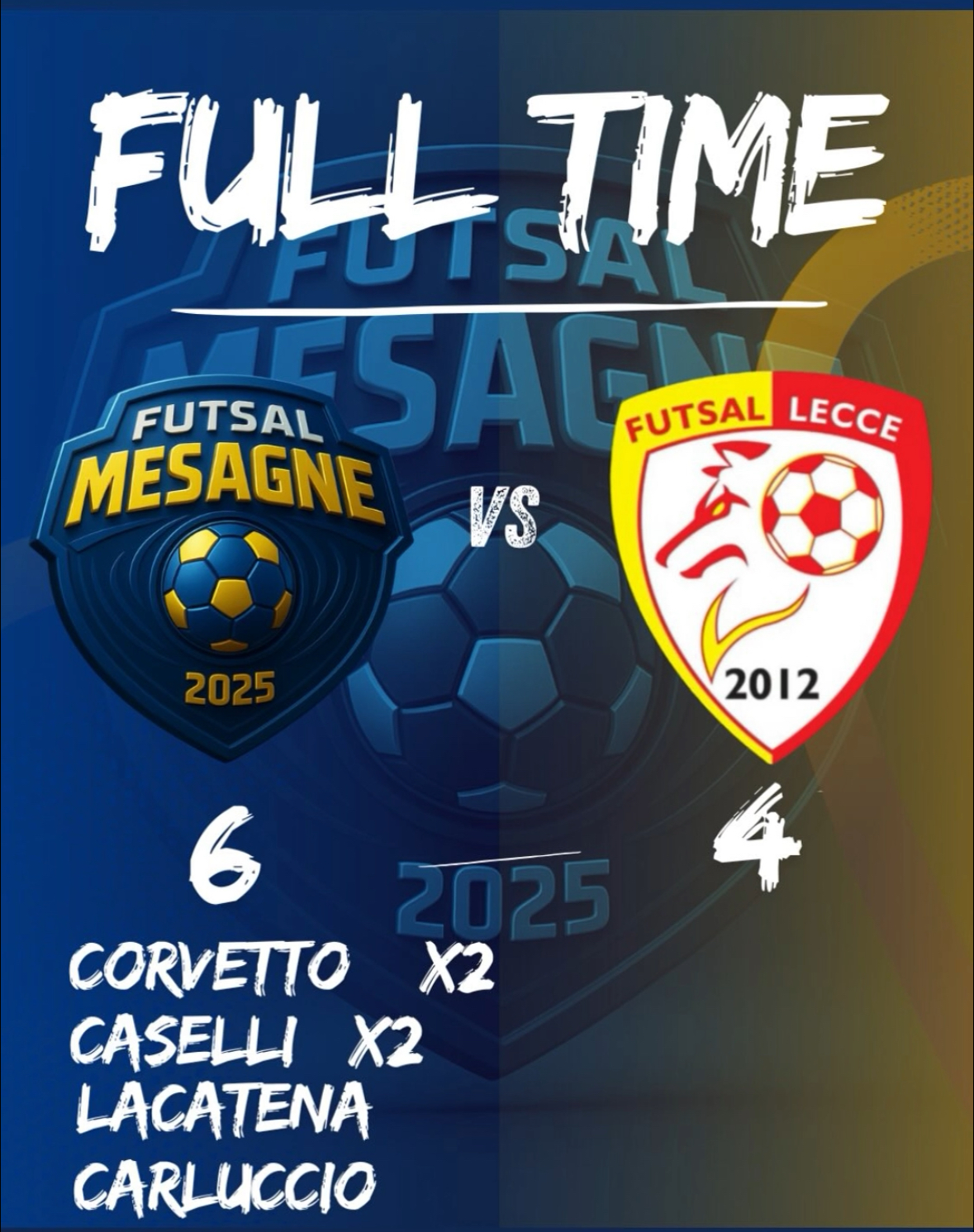 Il punteggio finale premia una prestazione solida e matura, frutto di un lavoro quotidiano che sta dando risultati evidenti: pressing efficace, manovra fluida e una crescente consapevolezza nei propri mezzi. Anche nei momenti più delicati della partita, il Mesagne ha saputo reagire con carattere, confermando i progressi mostrati nelle ultime uscite. Il successo contro il Lecce rappresenta un altro tassello importante nel percorso di crescita intrapreso dalla squadra, che settimana dopo settimana appare sempre più compatta e convincente. La strada è quella giusta: il Futsal Mesagne gioca ,vince e guarda al futuro con rinnovato entusiasmo.