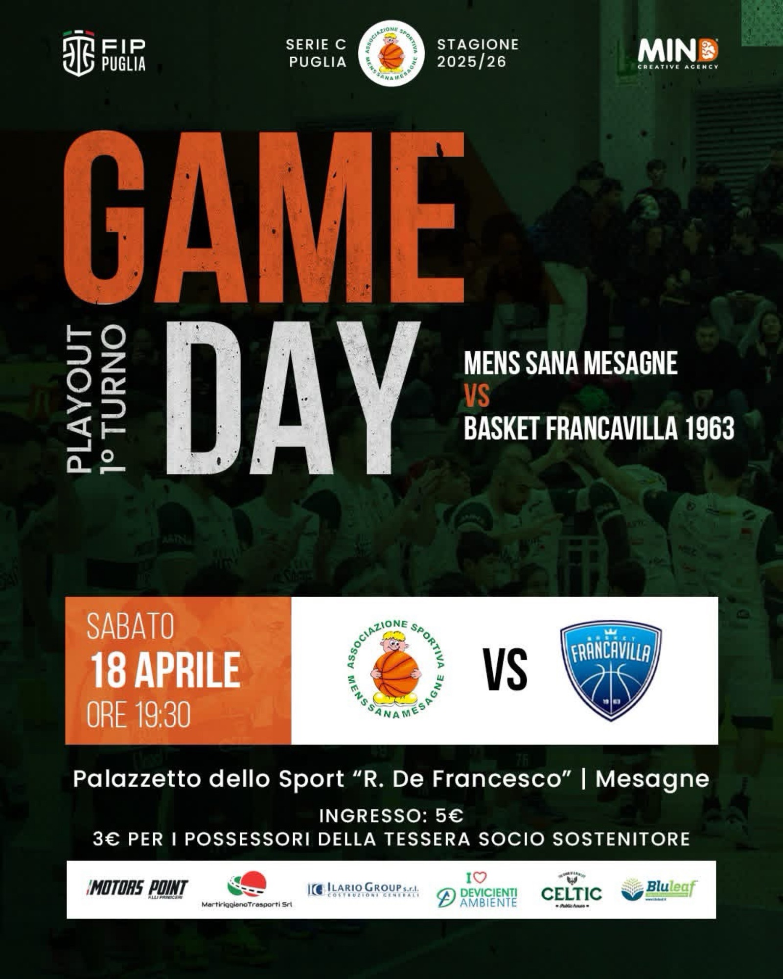 È il momento di reagire. Questa sera il Pala “De Francesco” di Mesagne ospita Gara 2 contro il Francavilla, una sfida decisiva per tenere viva la serie e continuare a inseguire l’obiettivo.
