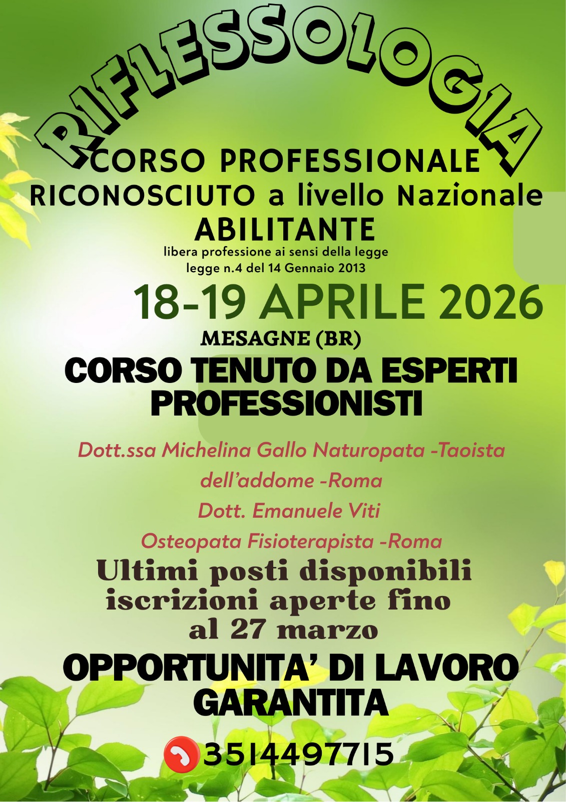 Trasformare la passione per le discipline bionaturali in una carriera solida e legalmente riconosciuta: è questa l’opportunità lanciata dal nuovo Corso Professionale di Riflessologia, che si terrà a Mesagne il 18 e 19 aprile 2026. In un mercato del benessere in costante crescita, la formazione di alta qualità fa la differenza. Il corso si distingue nel panorama nazionale per tre pilastri fondamentali: