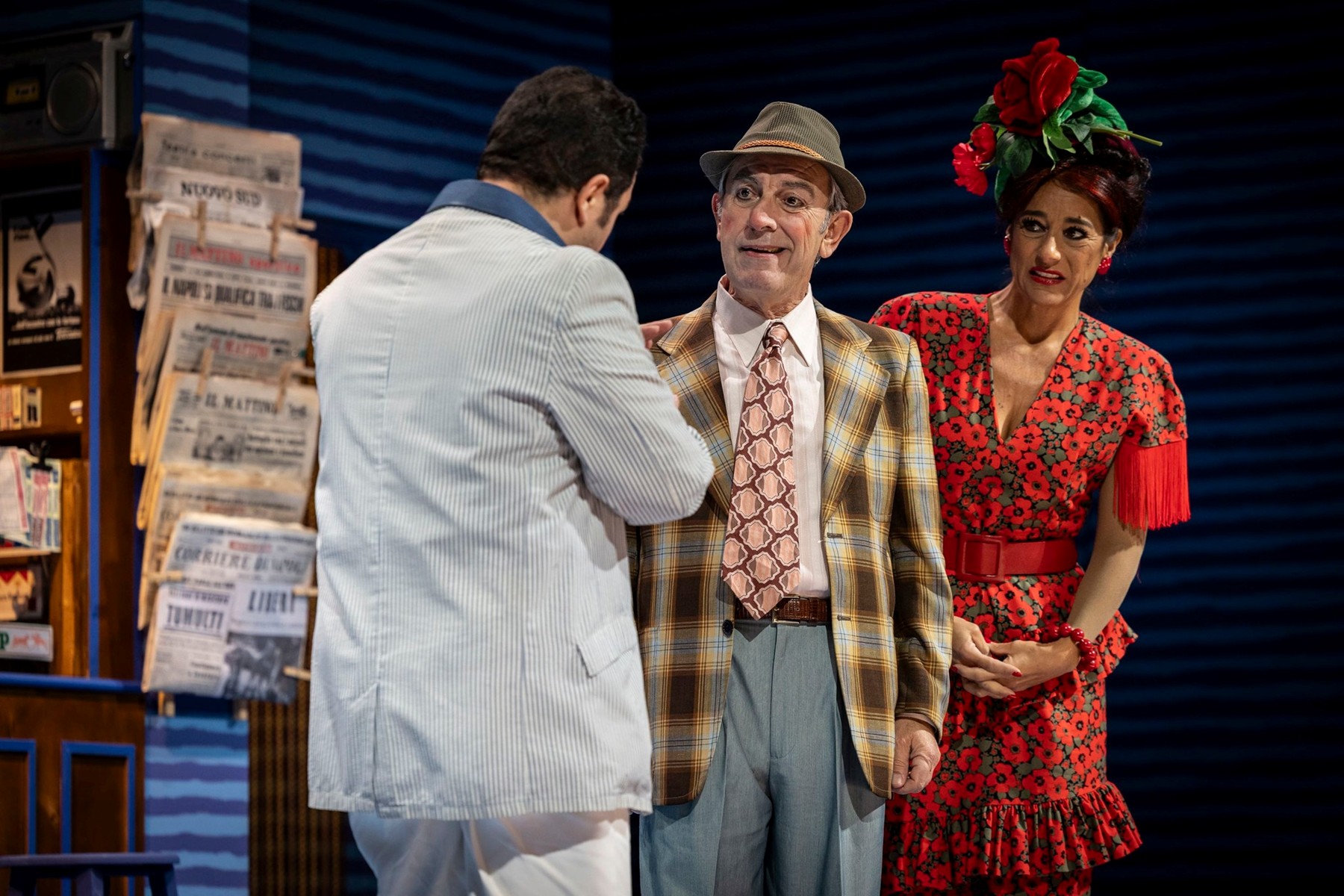 Intorno a Imparato si muove un ensemble compatto. Giuseppe Brunetti disegna un Ciccillo nervoso e brillante, motore dell’inganno e ritratto di un’epoca in cui la furbizia sembra contare più della lealtà. Luigi Bignone, nei panni di Michelino, porta in scena una fragilità tenera, sospesa tra complicità e rimorso. Alessandra D’Ambrosio e Arianna Primavera tengono insieme ironia e saggezza quotidiana; Giorgio Pinto attraversa i suoi personaggi con naturalezza e duttilità. Attorno, la “fauna” della Pensione Stella – il Maggiore, il musicista squattrinato, lo scrittore che straccia le proprie pagine, l’attore in cerca di un Otello impossibile – compone un affresco di solitudini che si riconoscono senza dichiararsi.