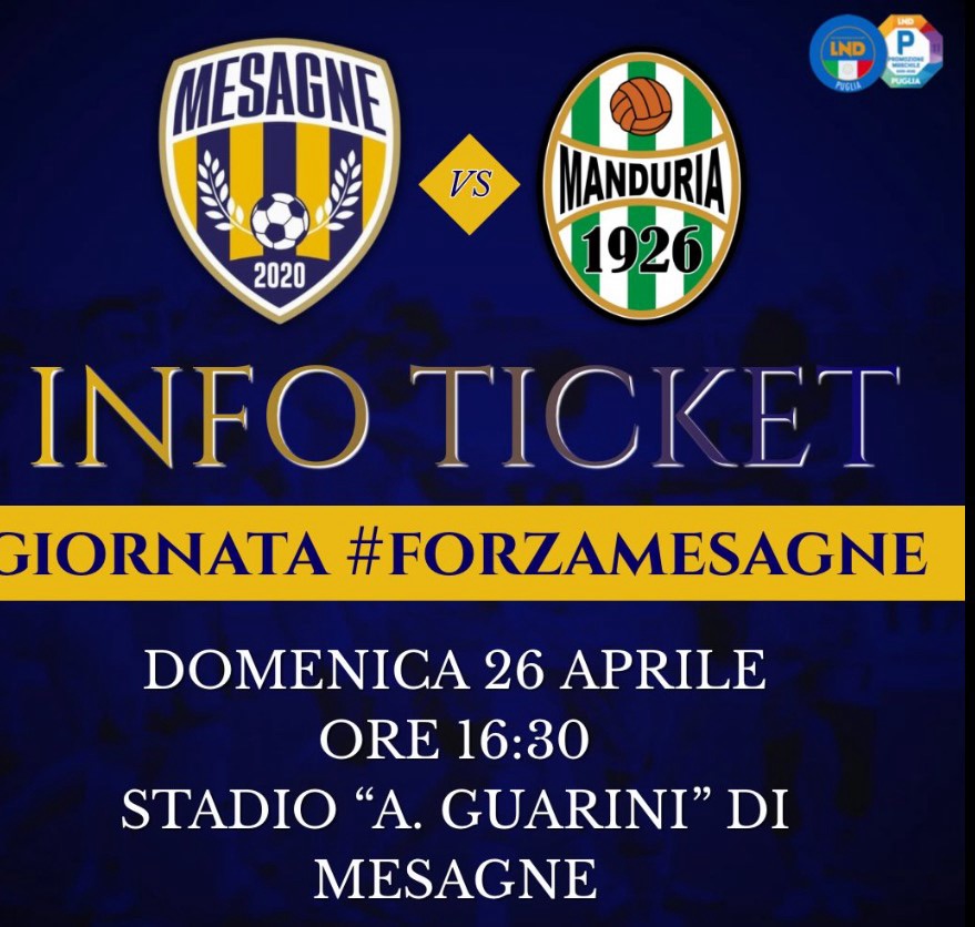 Domenica 26 Aprile ore 16:30, Mesagne calcio 2020 -Manduria. La 32esima giornata del campionato di promozione pugliese. Giornata del Forza Mesagne.
