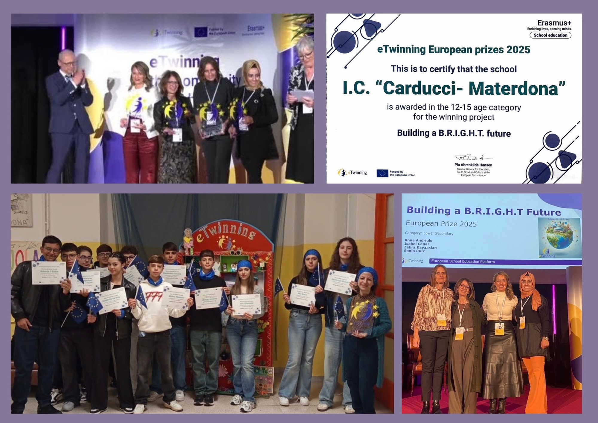 Grande orgoglio per l’I.C. “Carducci–Materdona”, vincitore del Premio Europeo eTwinning 2025 nella categoria 12–15 anni con il progetto Building a B.R.I.G.H.T. Future, realizzato dalla classe 3B (a.s. 2024–25) sotto la guida della prof.ssa Anna Andriulo e dell’intero consiglio di classe.