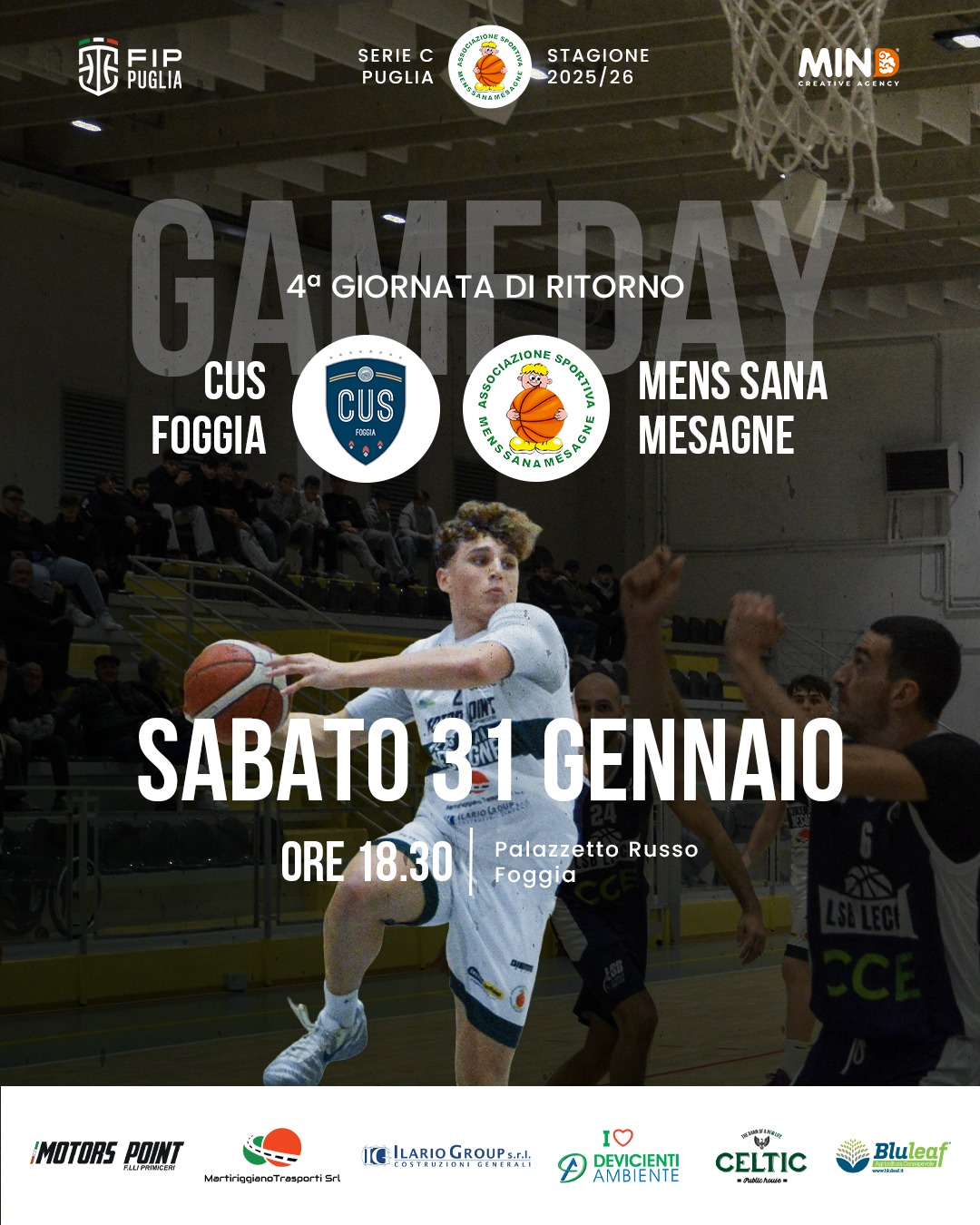 Dopo una settimana intensa di lavoro in palestra e preparazione tattica, la Mens Sana Mesagne è pronta a tornare sul parquet per un nuovo, delicato appuntamento di campionato. Sabato 31 gennaio, alle 18:30, i biancazzurri saranno di scena al Palazzetto Russo di Foggia per affrontare il CUS Foggia nella 4ª giornata di ritorno del campionato di Serie C Puglia. Una trasferta tutt’altro che semplice, contro una formazione solida, ben organizzata e abituata a sfruttare il fattore campo.