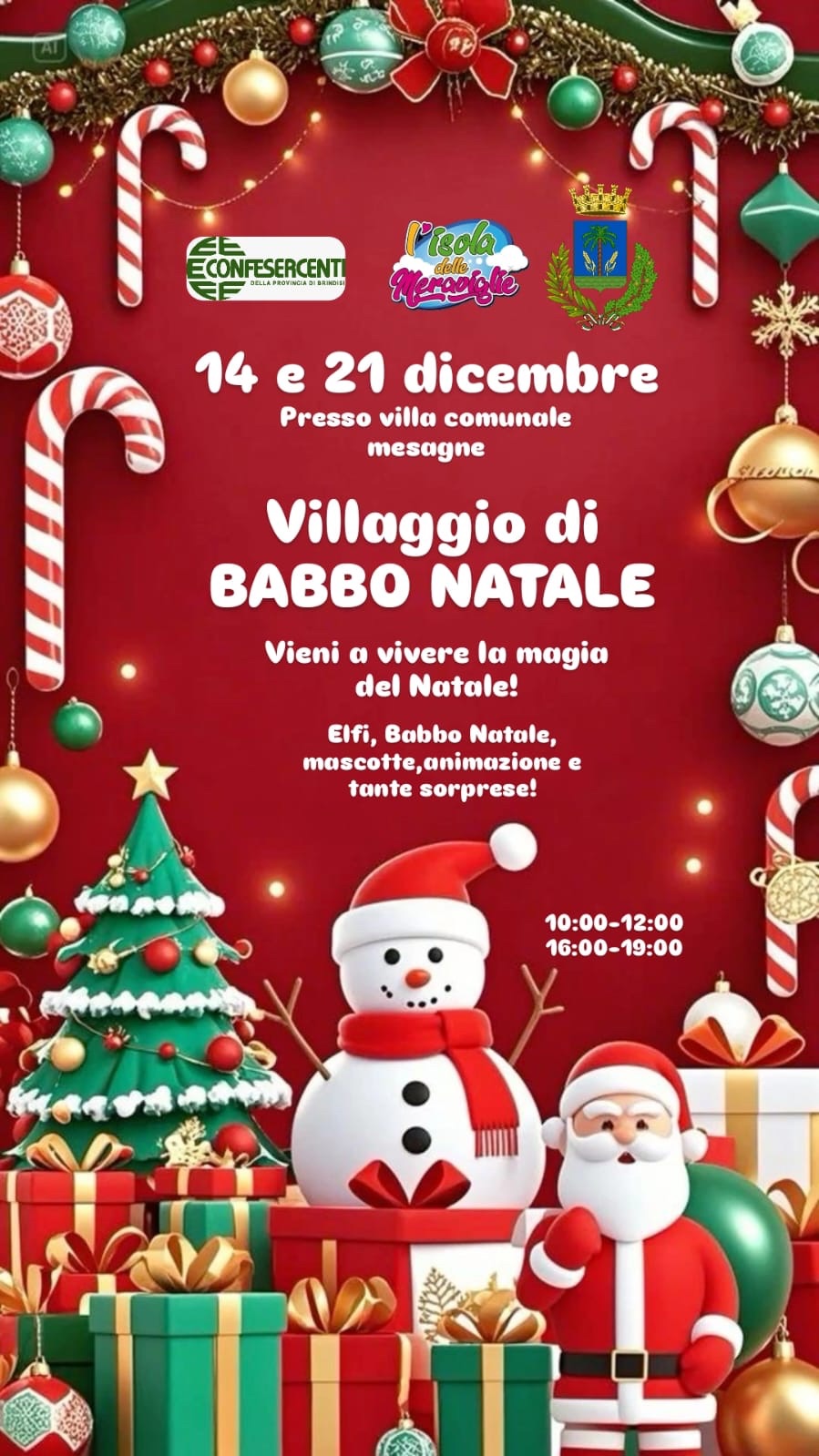 La magia del Natale continua a Mesagne. Dopo la grande partecipazione registrata nella precedente giornata, domenica 21 dicembre il Villaggio di Babbo Natale tornerà ad animare la Villa Comunale, offrendo a grandi e piccoli un’esperienza immersiva all’insegna delle luci, dei giochi e dell’animazione natalizia.
