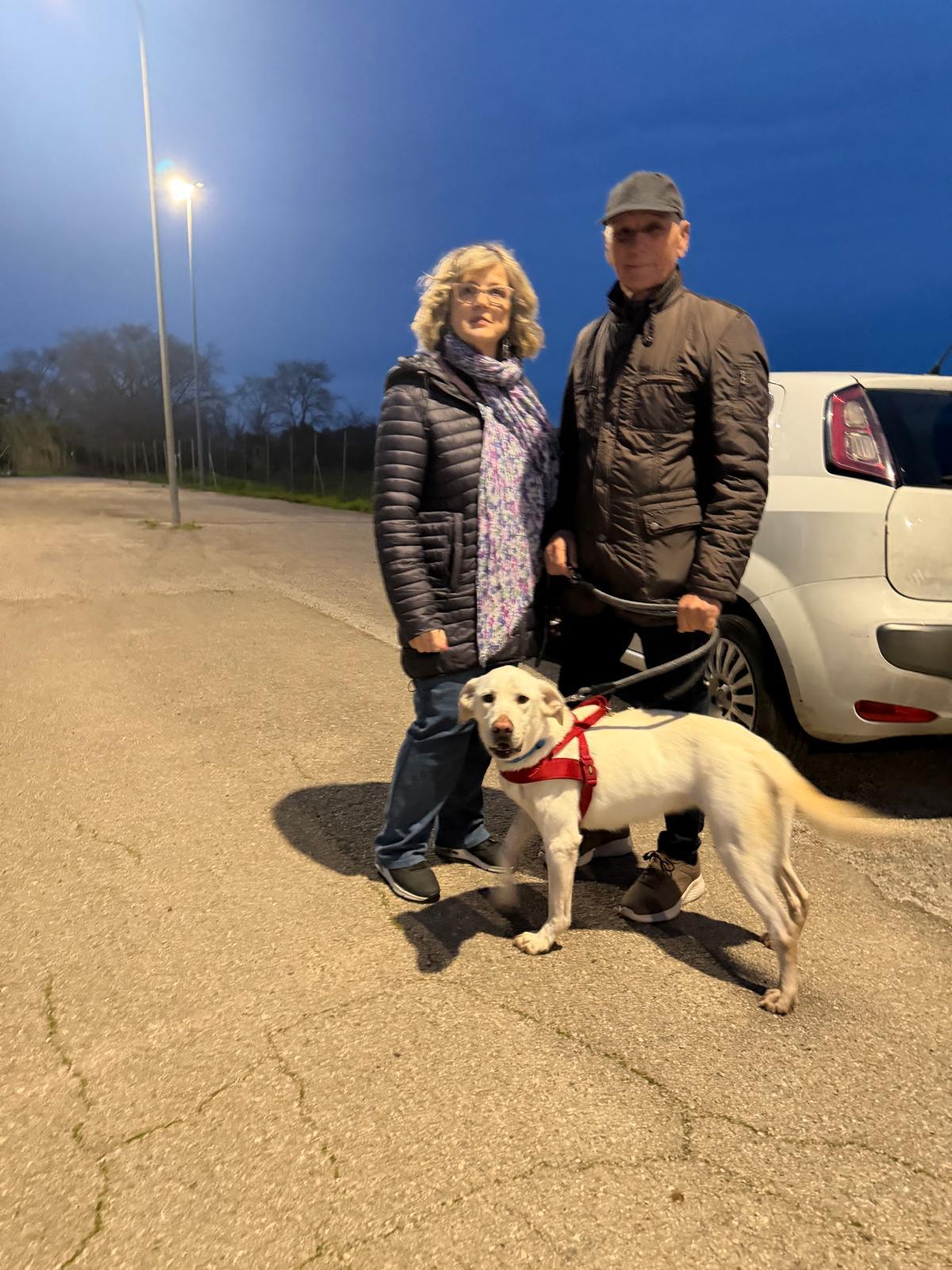 Anche Kira ha atteso il suo momento. È arrivata in canile a gennaio 2024 con la sorella e con una decina di cuccioli, tutti adottati in poco tempo. Lei è rimasta, con la pazienza che solo i cani sanno avere. Ha affrontato la terapia per la filaria e ha portato con sé una positività alla leishmania, una parola che spesso spaventa e allontana. Maria, Mimino e Katia hanno scelto invece di restare, di aspettare la fine delle cure e di portare a casa Kira senza esitazioni, con amore e responsabilità. Oggi quella che era una cagnolina fragile ha trovato sicurezza e affetto nella sua nuova famiglia, proprio qui, vicino a Mesagne.