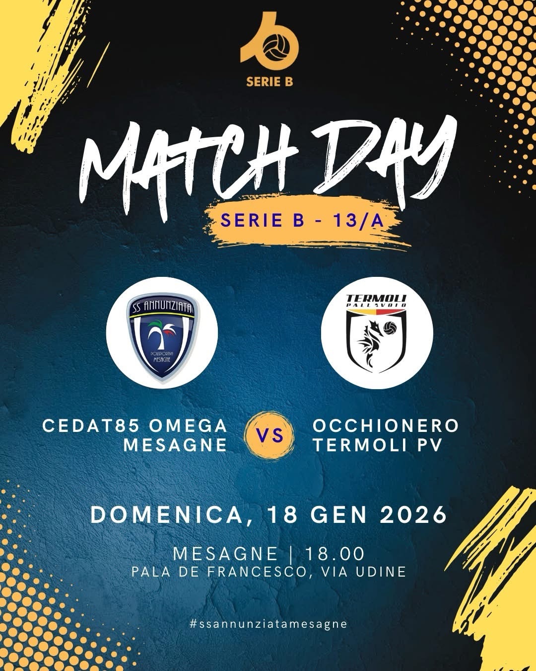 Per l’ultima del girone d’andata si torna al Pala De Francesco, dove la Santissima Annunziata ospiterà il Termoli in una partita importante per dare continuità al nostro 2026.